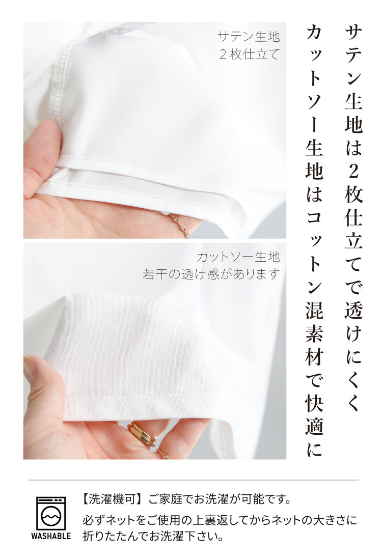 サテン生地は2枚仕立てで透けにくく