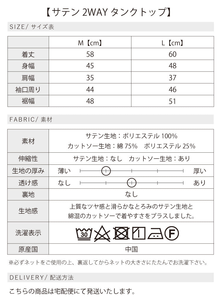 サイズが選べる【サテン2WAYタンクトップ】