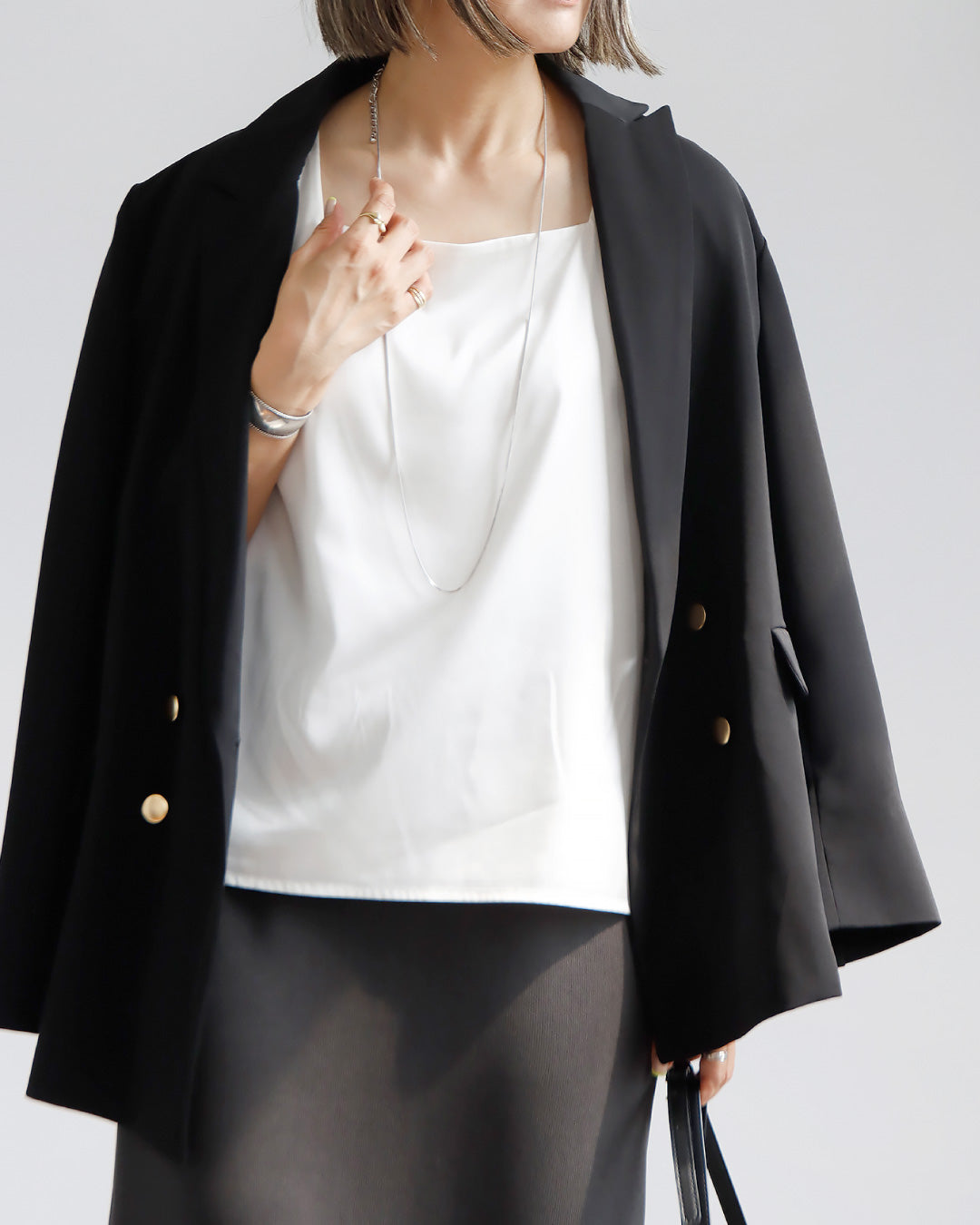 サテンブラウス風にジャケットにイン!