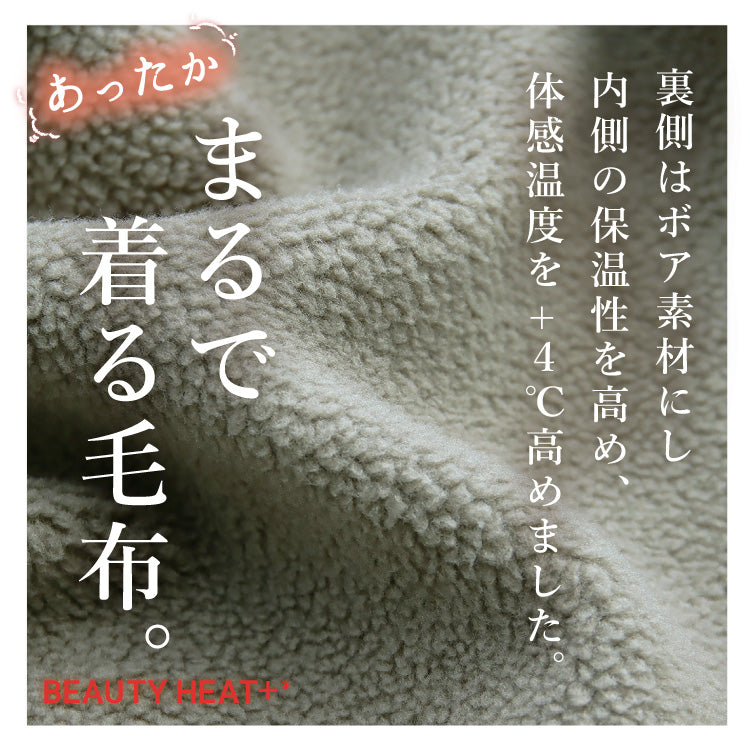 着るだけで+4℃も暖かくなる!まるで毛布のように暖かく軽い裏ボア素材。