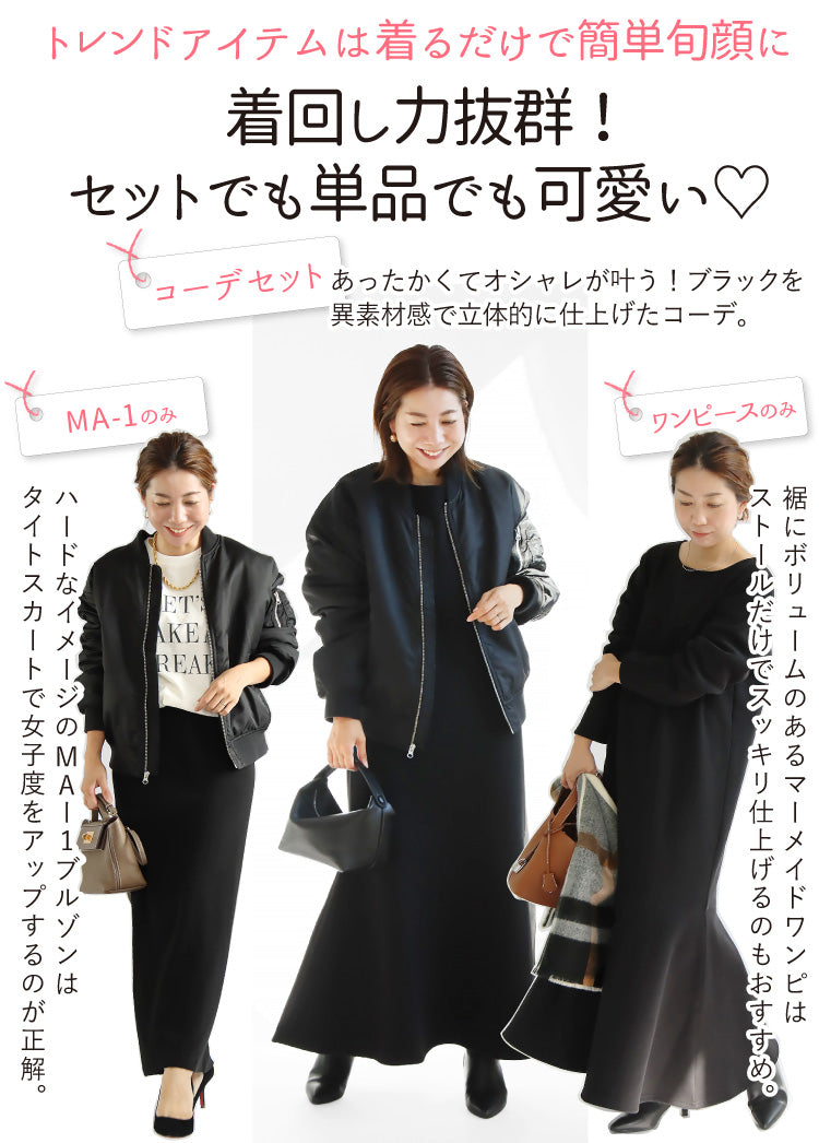MA-1×裏ボアマーメイドワンピースコーデ2点セット