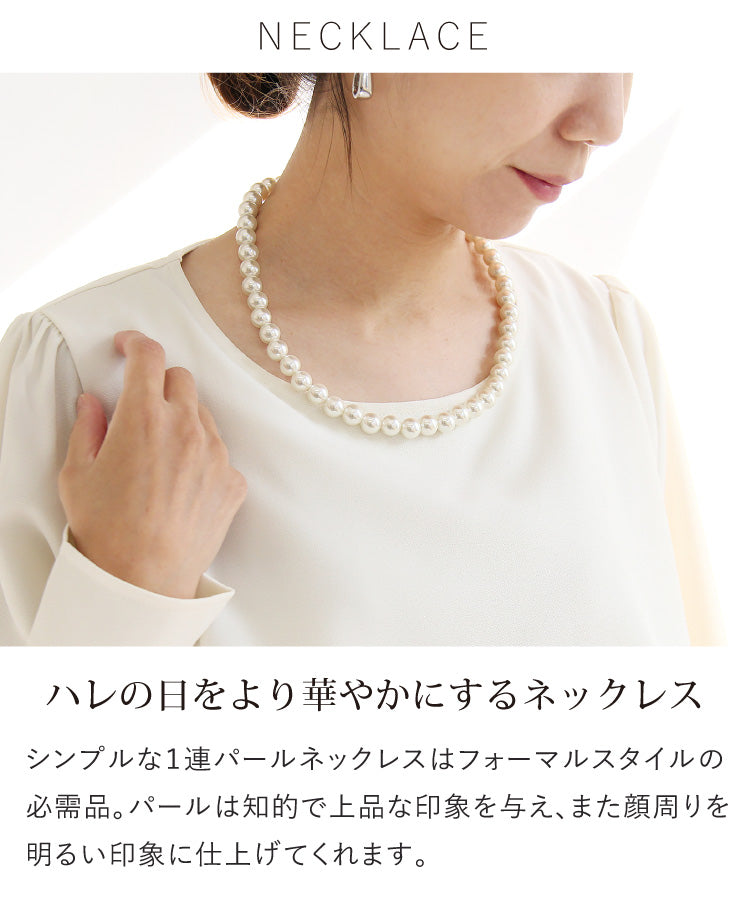 シンプルな1連パールネックレスはフォーマルスタイルの必需品。