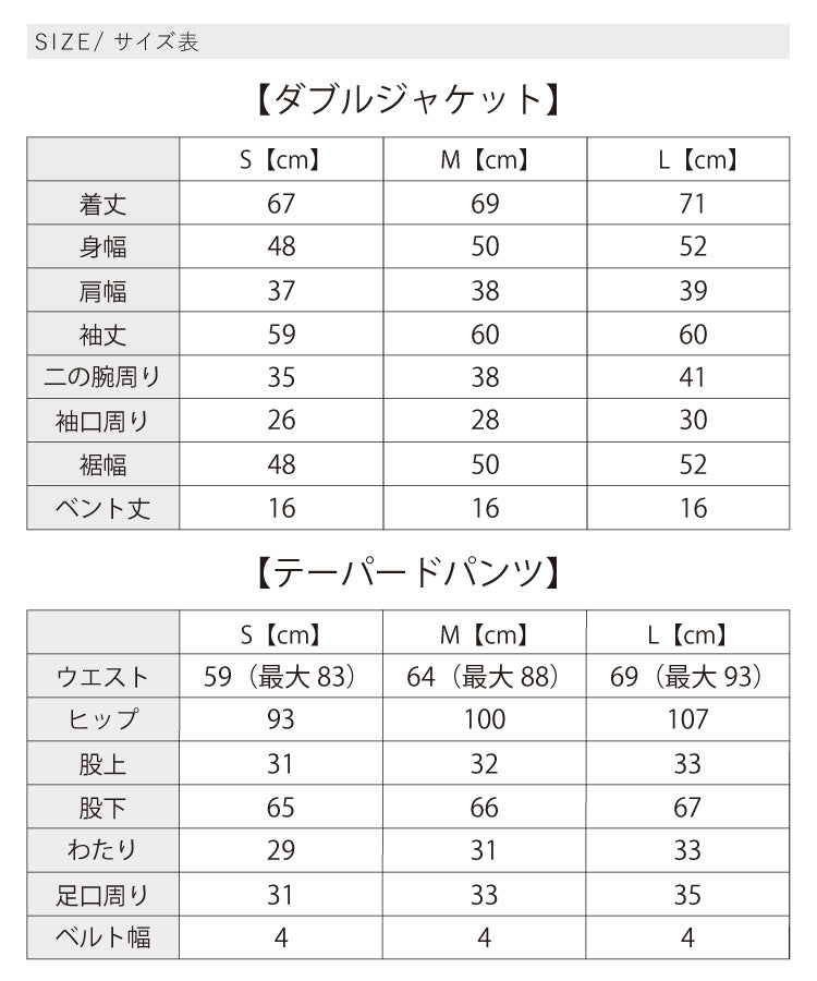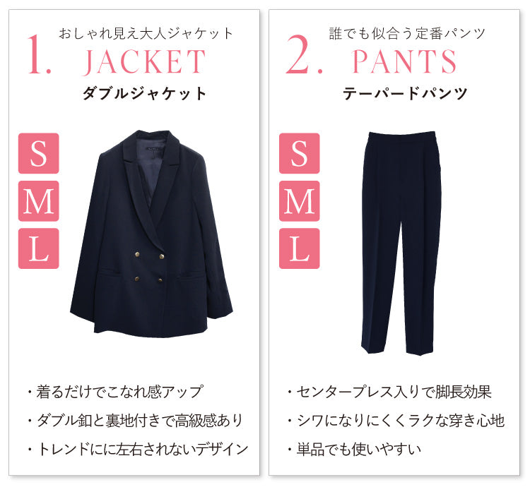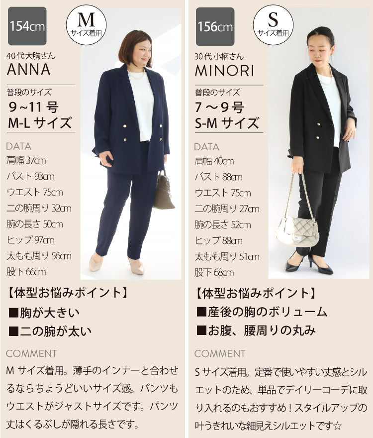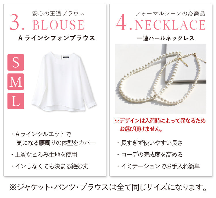 ※ジャケット・パンツ・ブラウスは全て同じサイズになります。