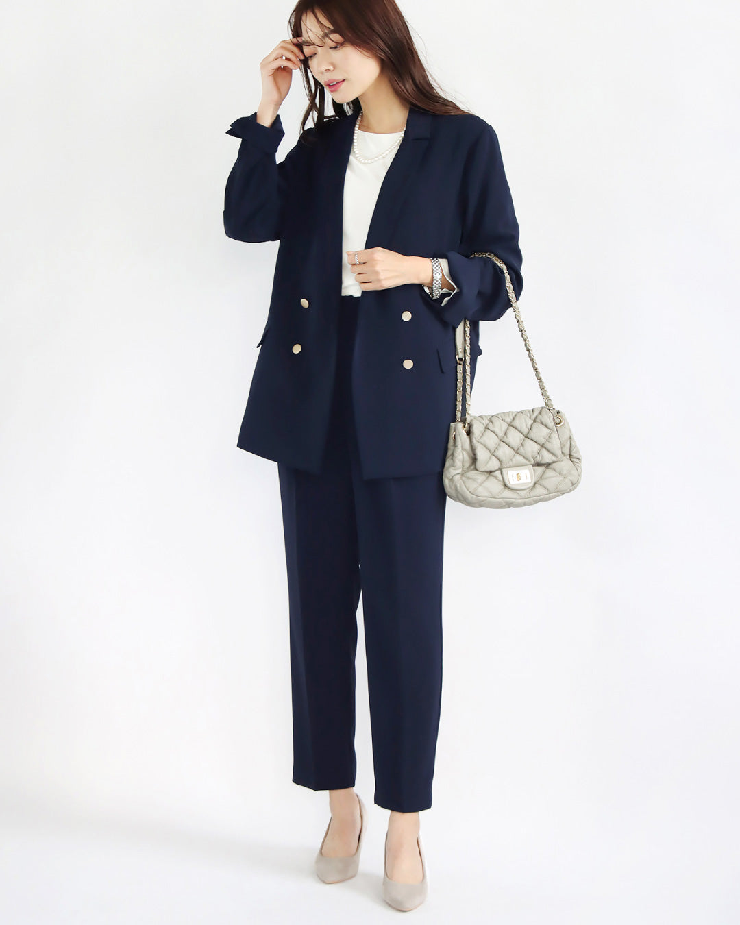 ブラウスは合わせやすいシンプルデザイン