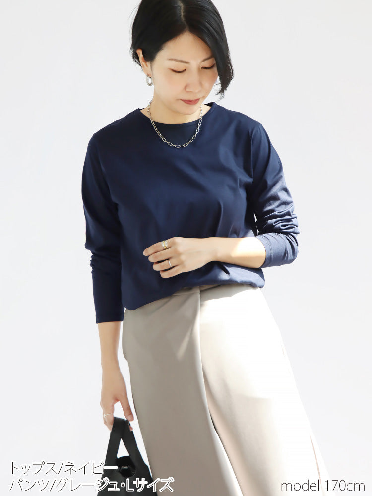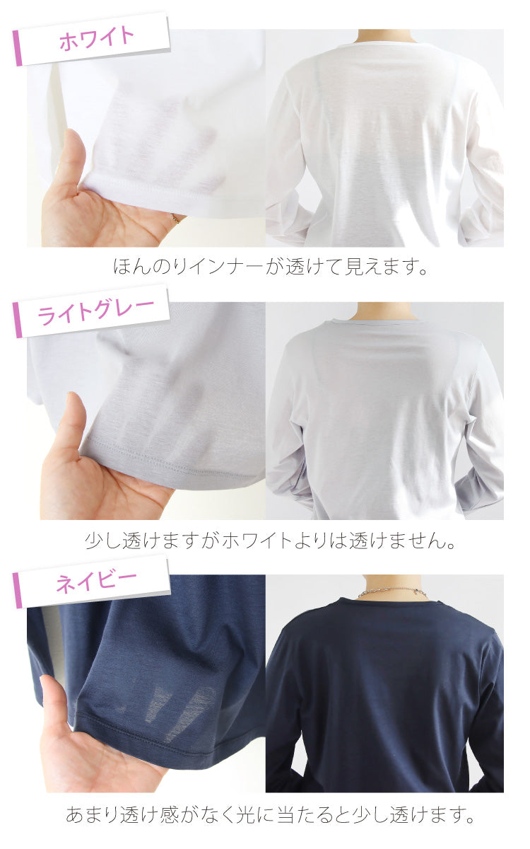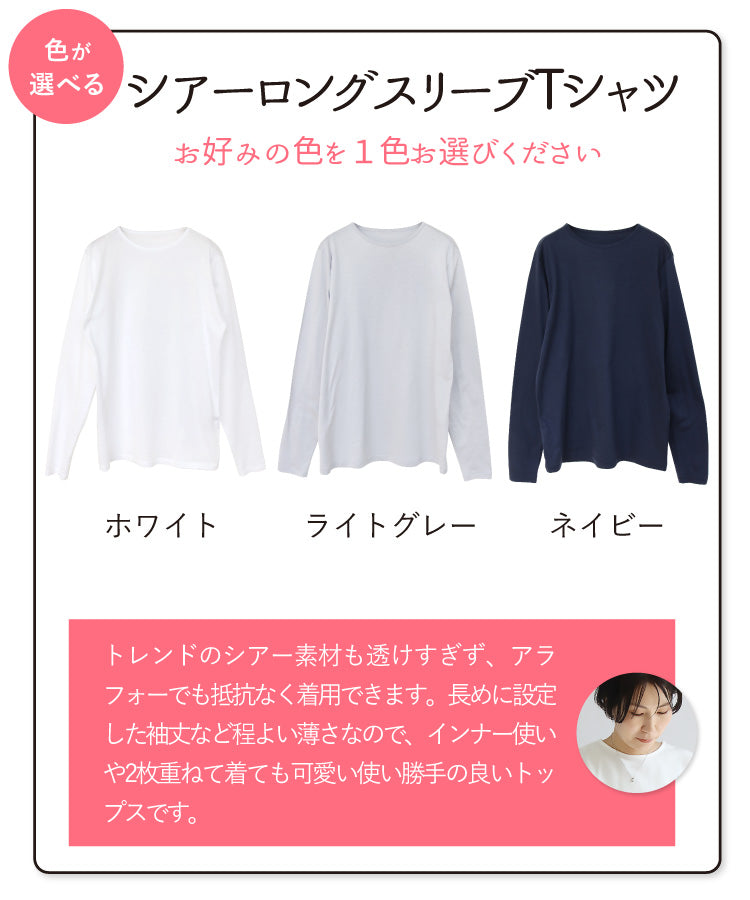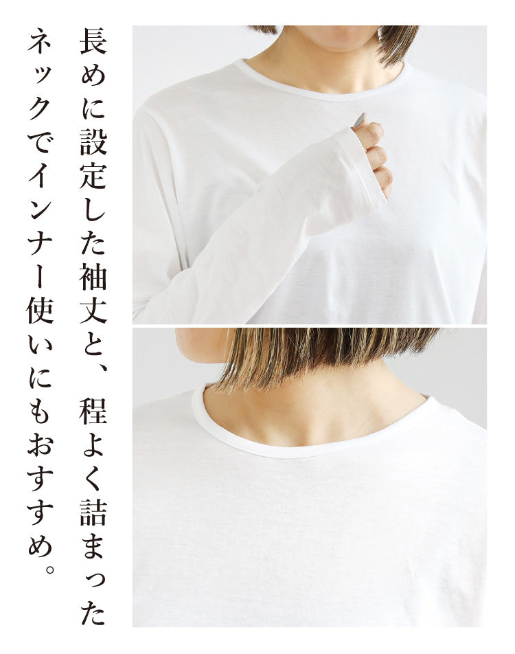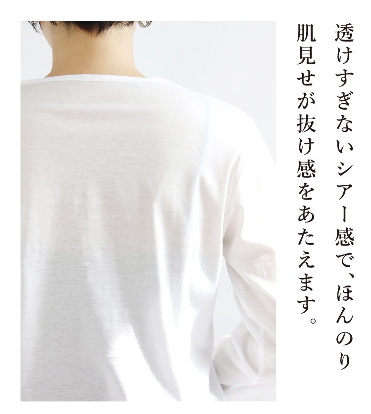 長めに設定した袖丈など程よい薄さなので、インナー使いや2枚重ねて着ても可愛い使い勝手の良いトップスです。
