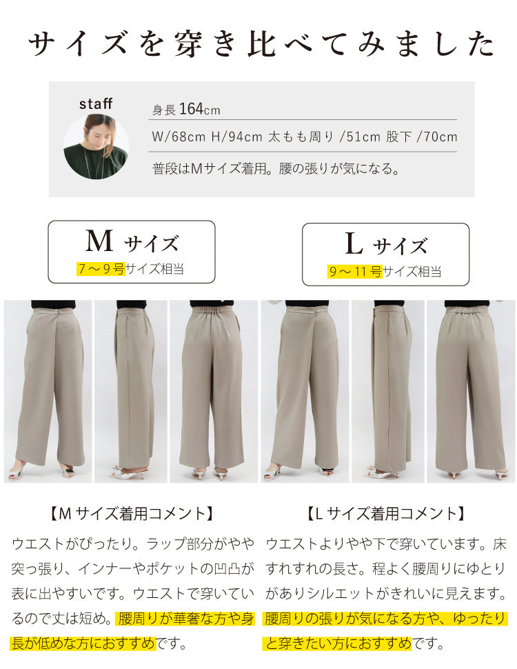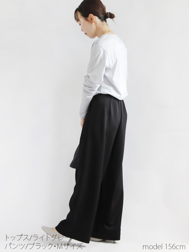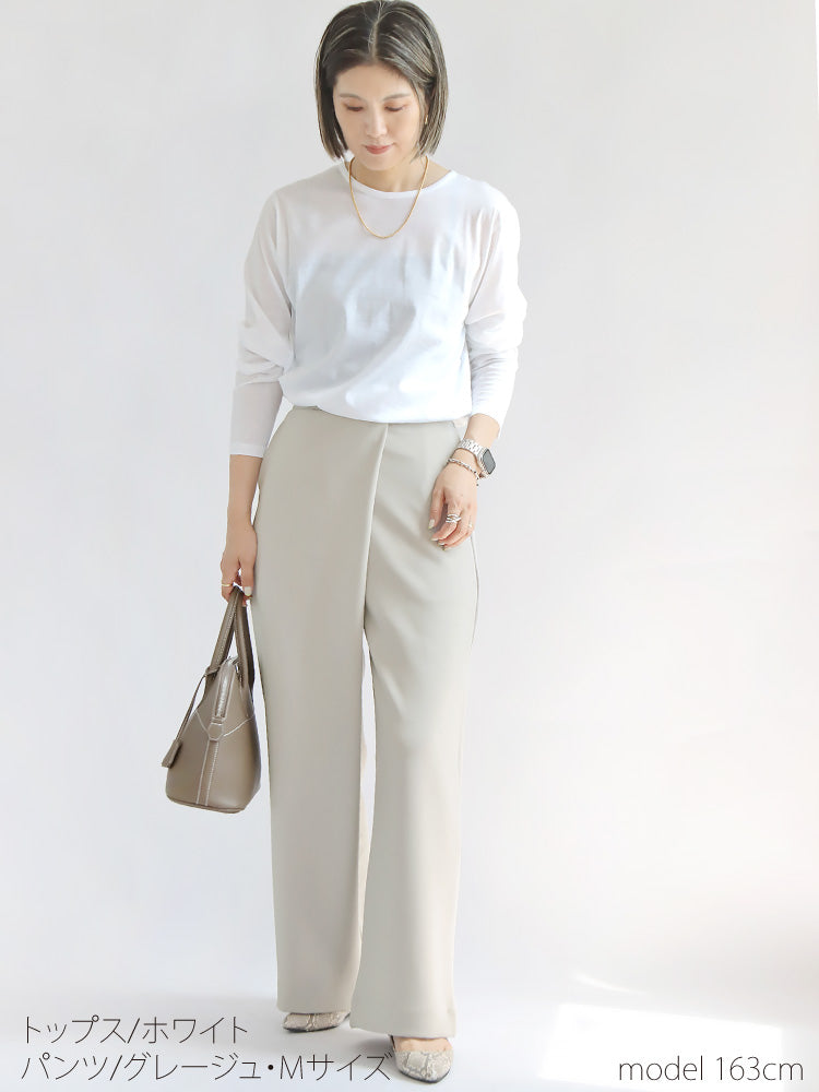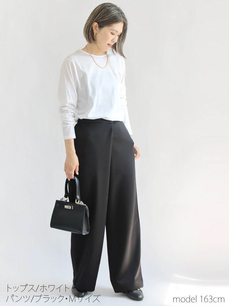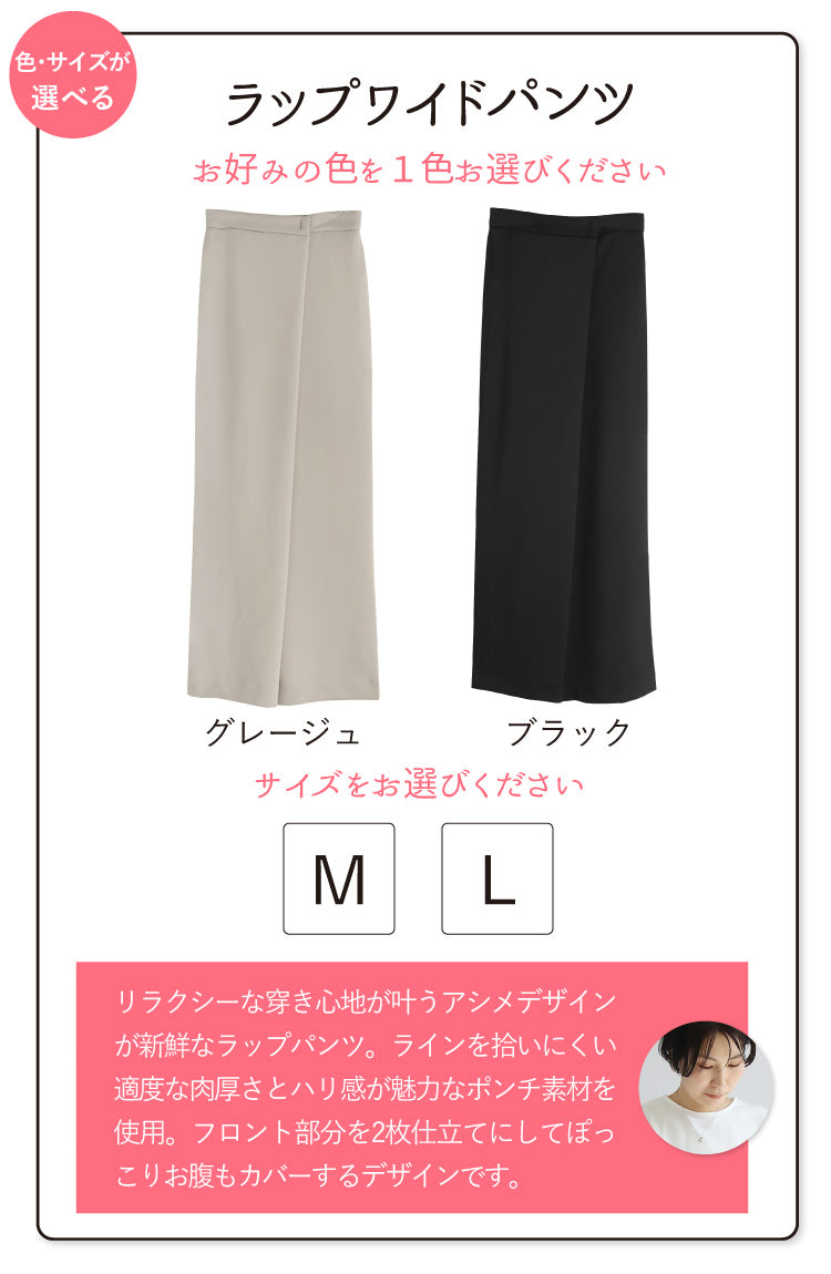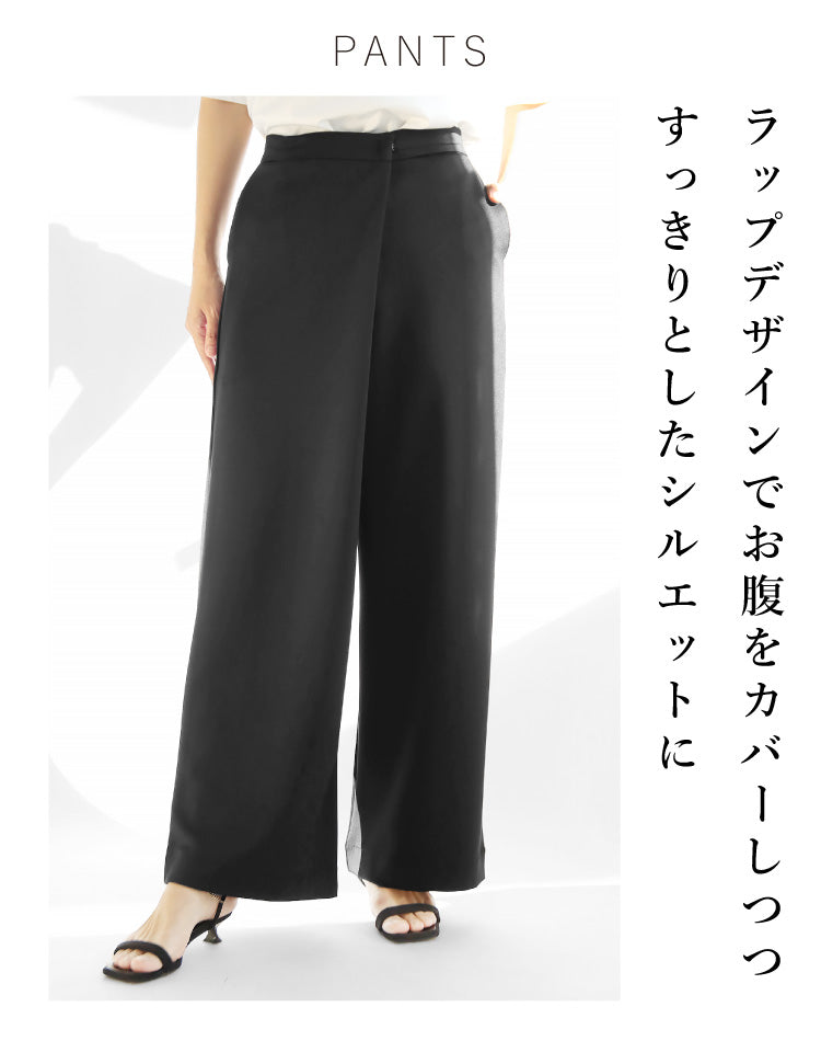 リラクシーな穿き心地が叶うアシメデザインが新鮮なラップパンツ。ラインを拾いにくい適度な肉厚さとハリ感が魅力なポンチ素材を使用。