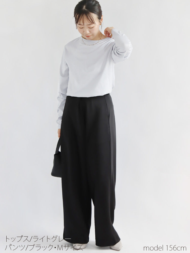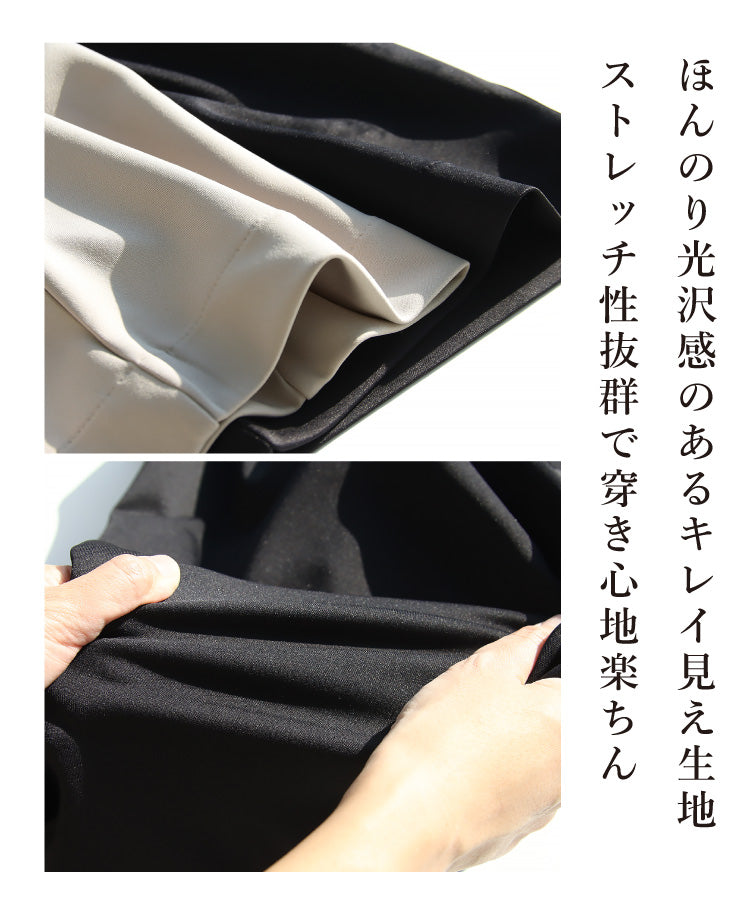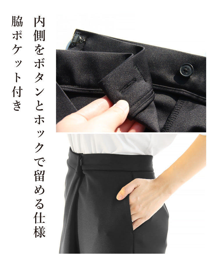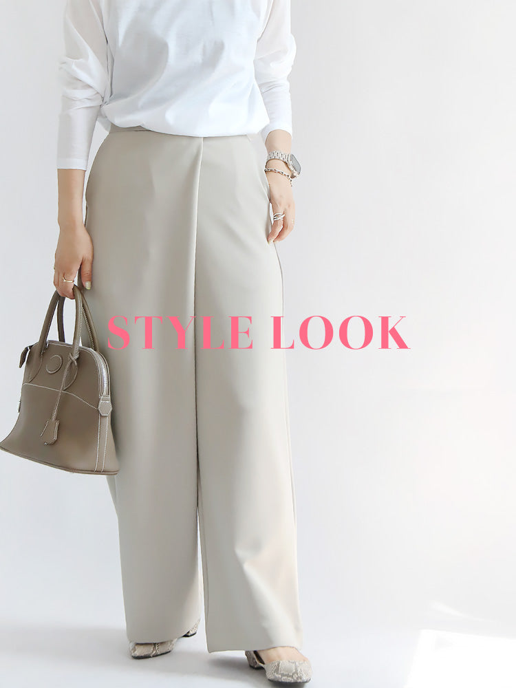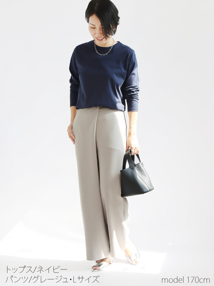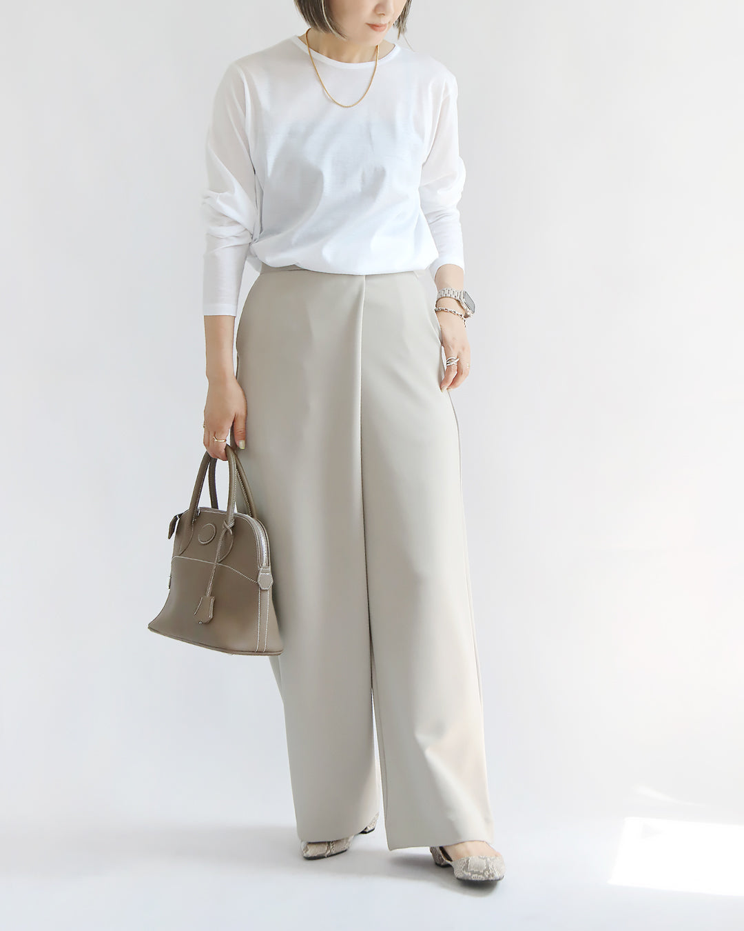 リラクシーな穿き心地が叶うアシメデザインが新鮮なラップパンツ。ラインを拾いにくい適度な肉厚さとハリ感が魅力なポンチ素材を使用。