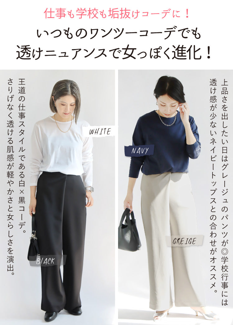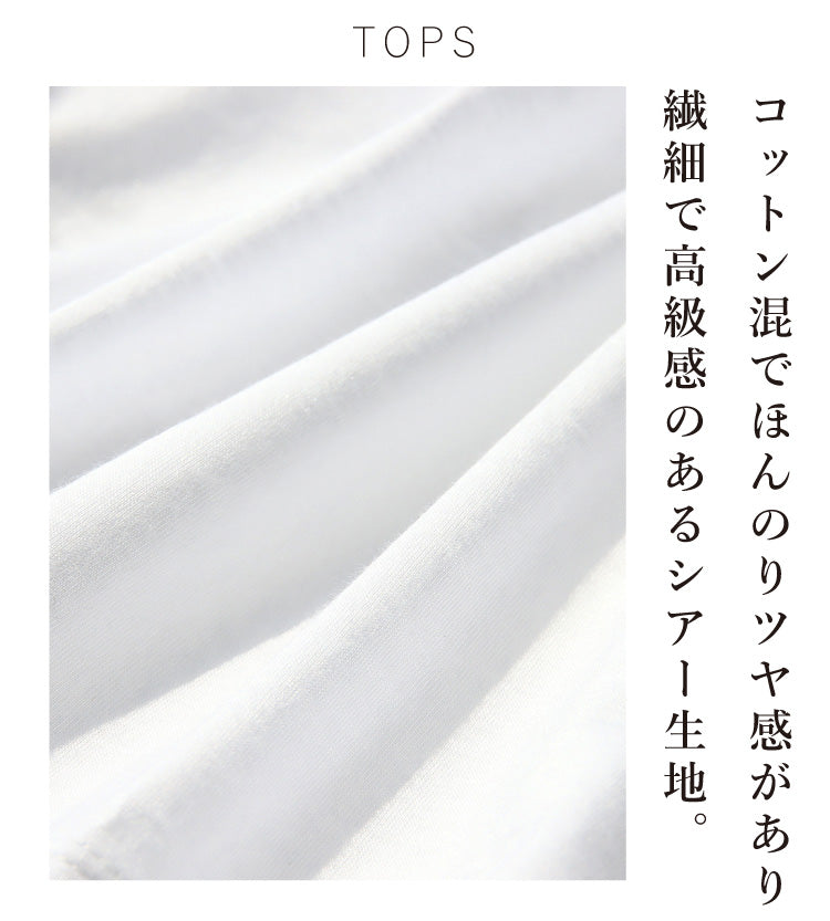 さりげなく透ける肌感が軽やかさと女らしさを演出。