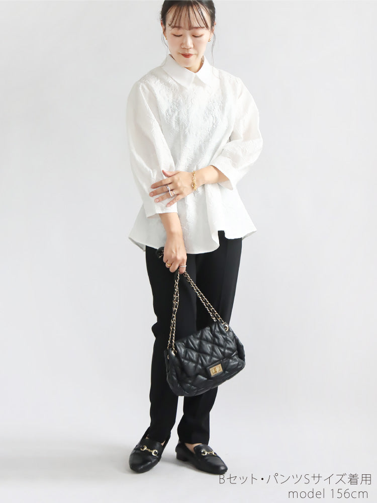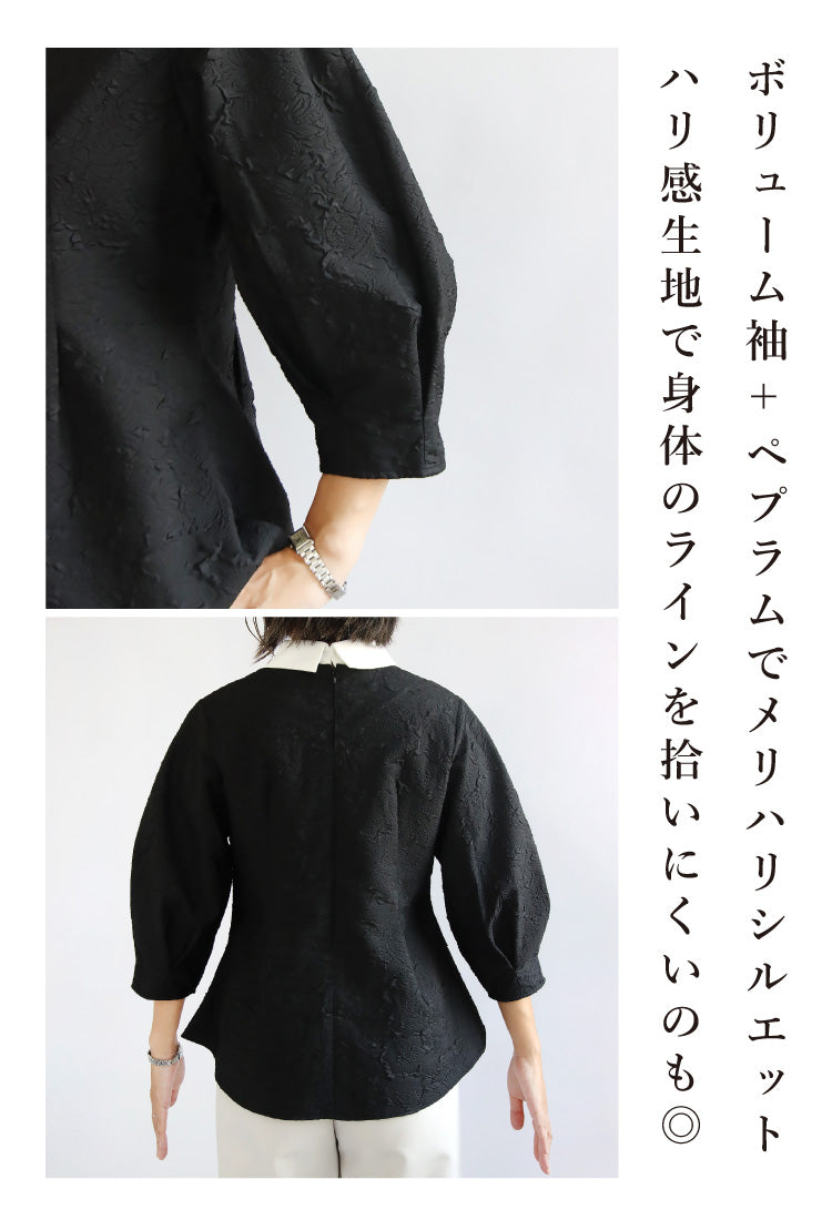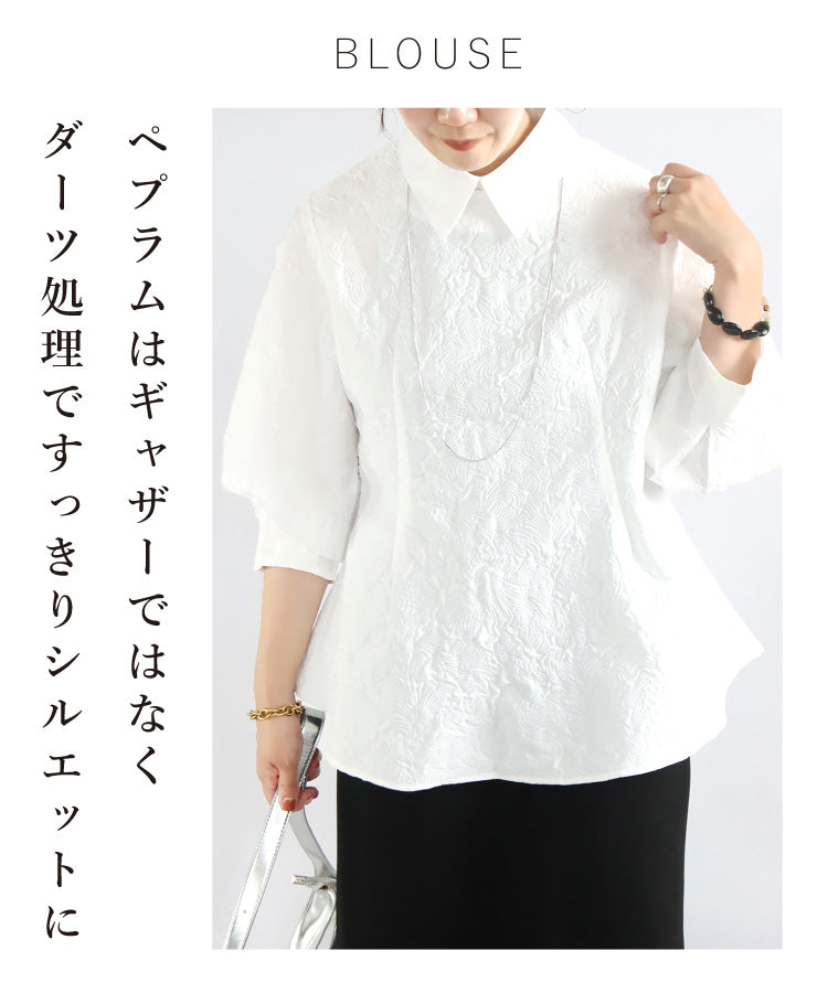 【ふくれジャガードペプラムブラウス】