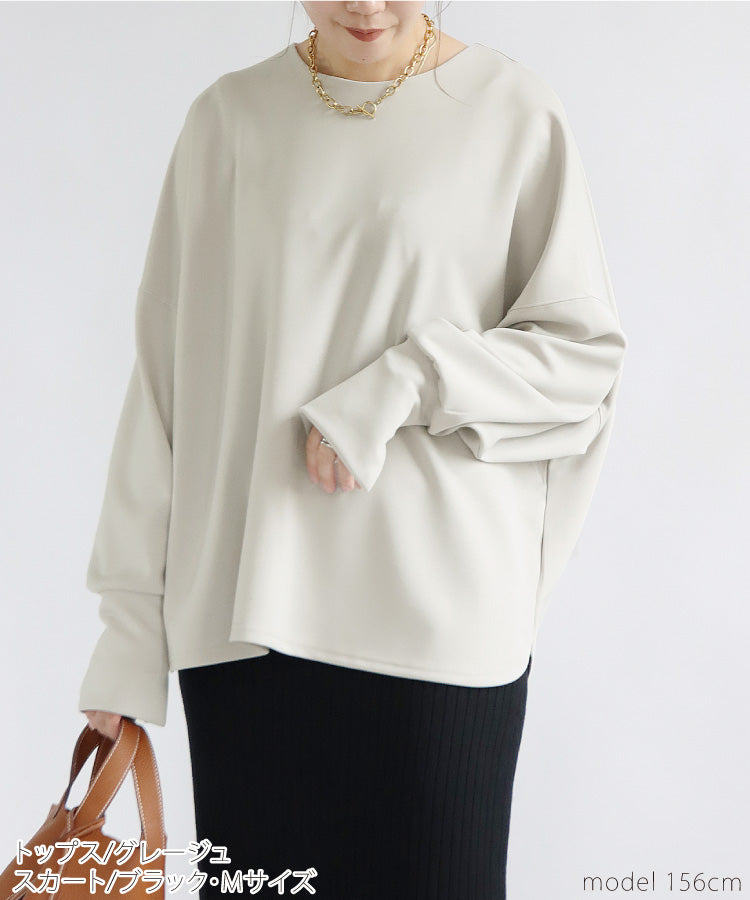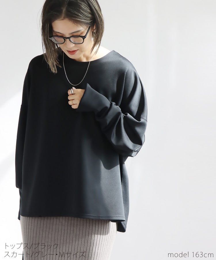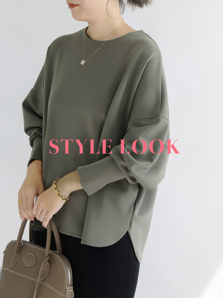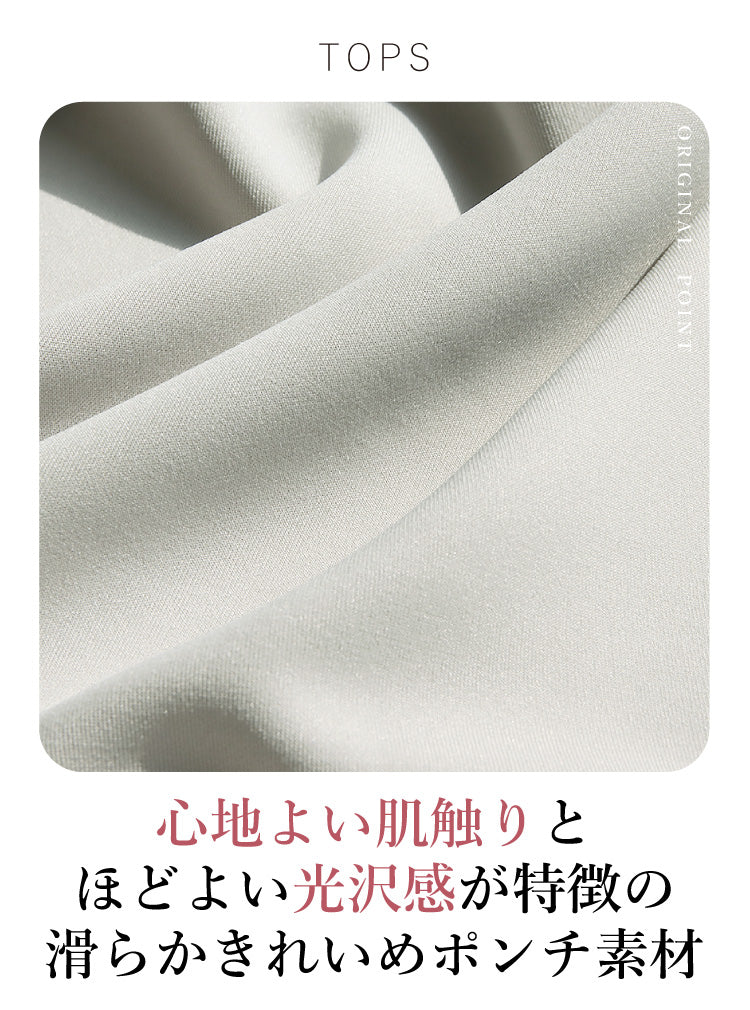 ほどよい光沢感がある滑らかポンチ素材を使用し、ストレスフリーで着られる上品なトップスを作りました。