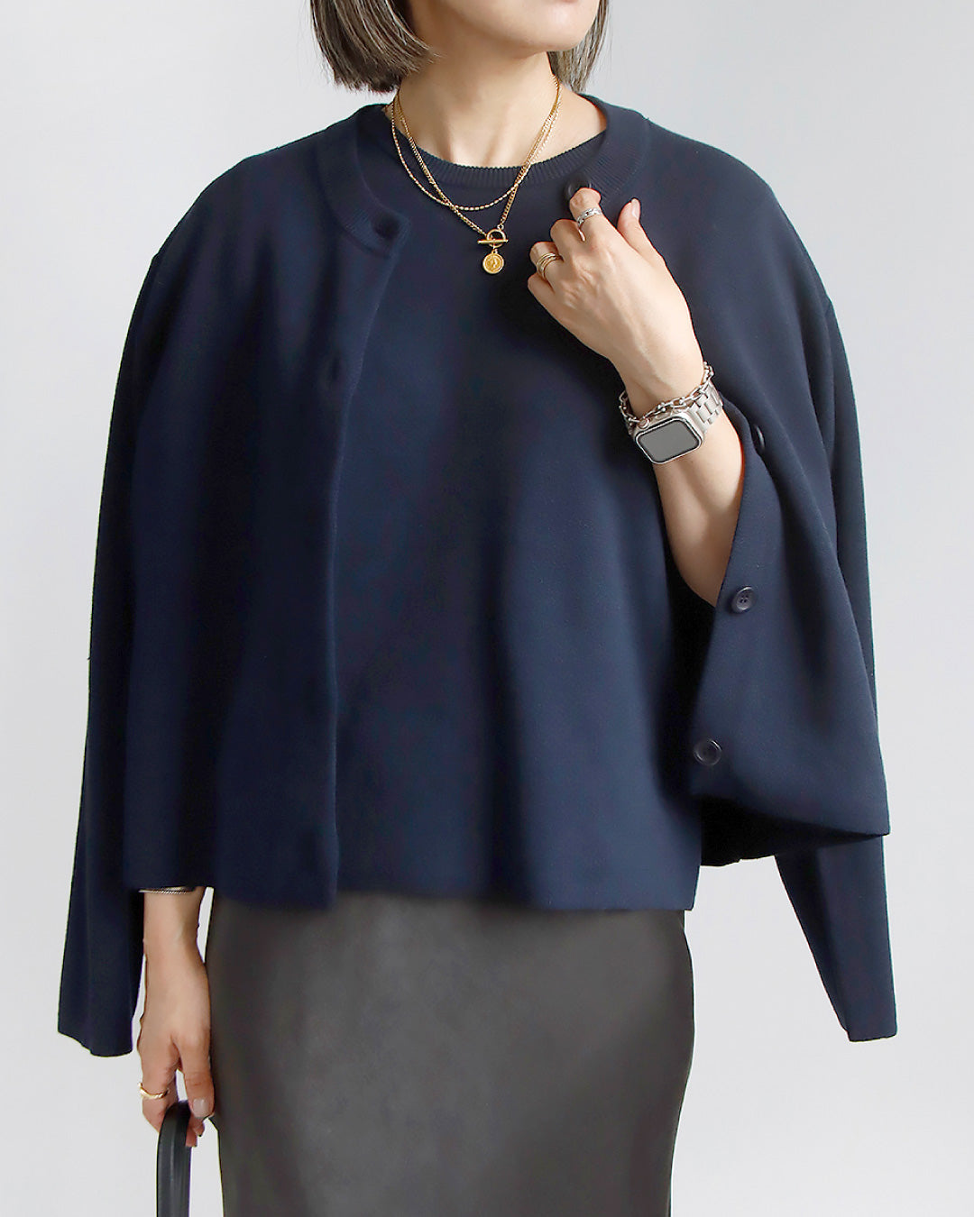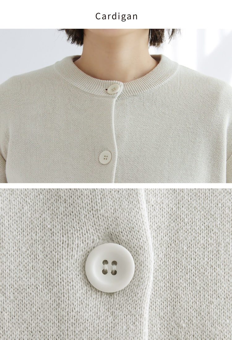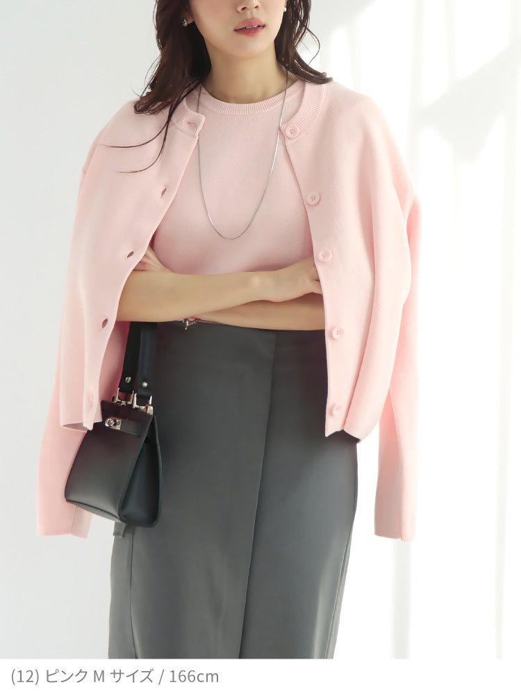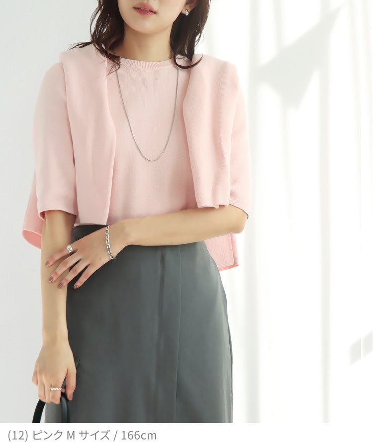 半袖ニット+長袖カーディガンのアンサンブルはセットでも単品でも着回せてロングシーズン愛用できます。