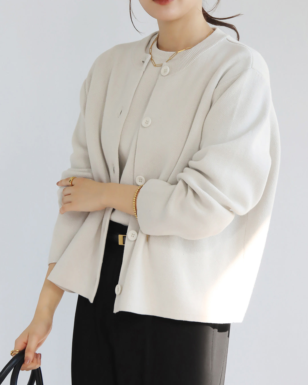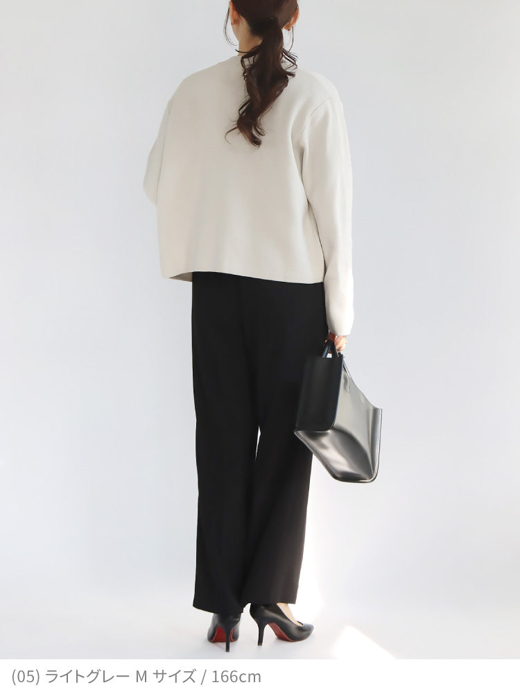 もっちりとした生地感で軽アウターにも最適な1枚。