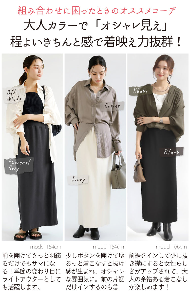 前を開けてさっと羽織るだけでもサマになる!季節の変わり目にライトアウターとしても活躍します。