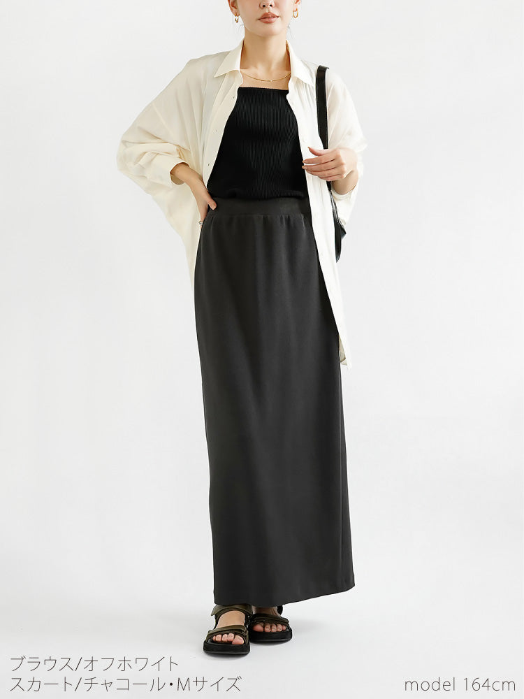 程よい肉感でオールシーズンOKな細リブニットを使用した大人が安心して穿けるタイトスカートを作りました。