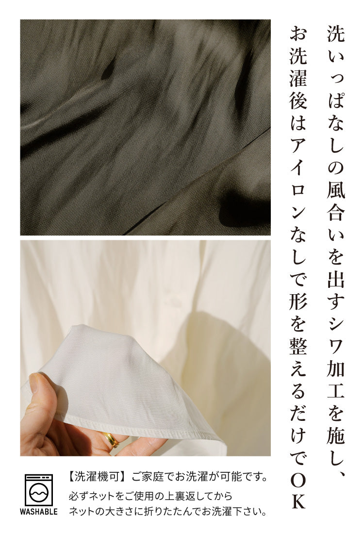 洗いっぱなしの風合いを出すシワ加工を施し、