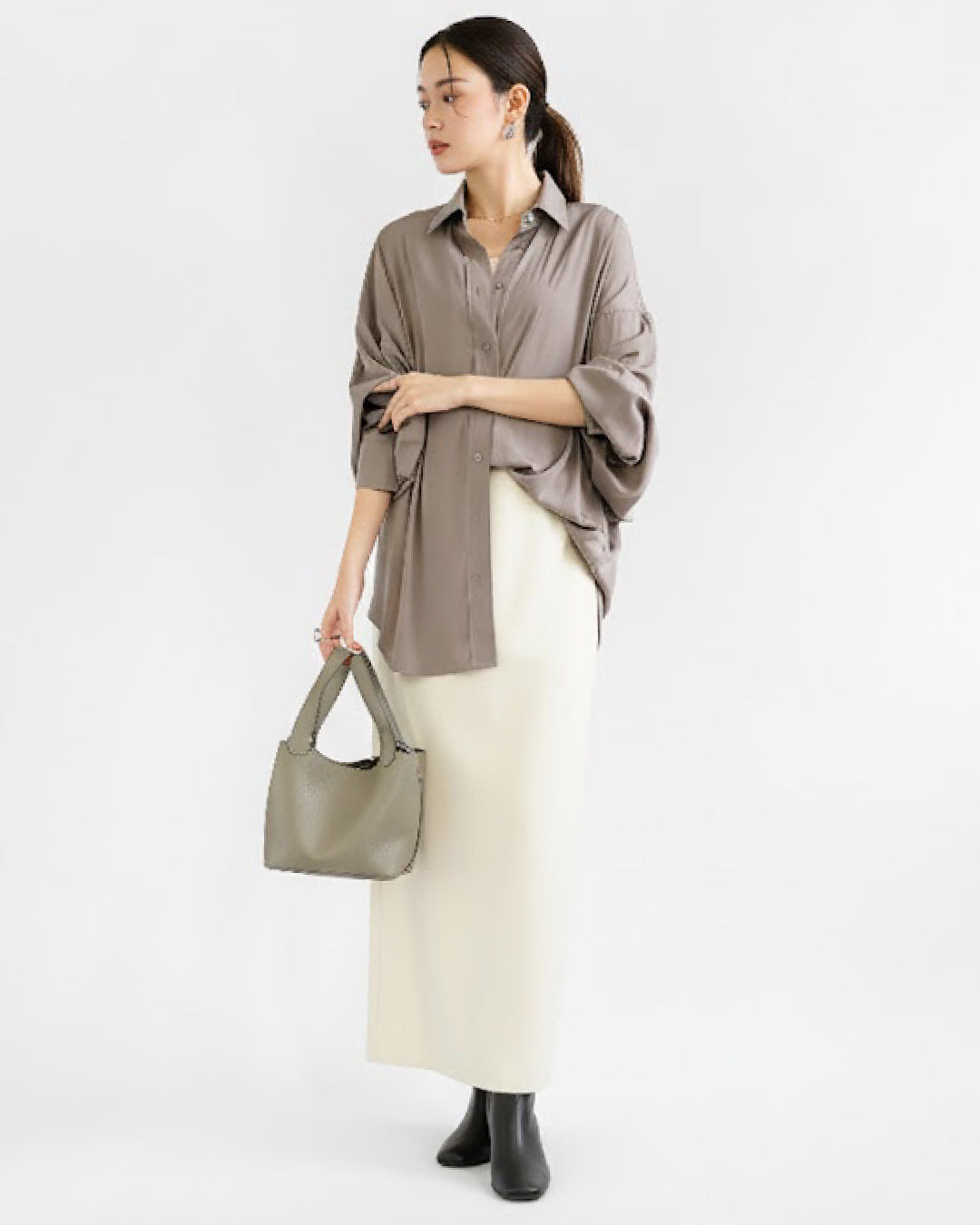 ルーズなドルマンシルエットで華奢見え&大人の抜け感を演出。