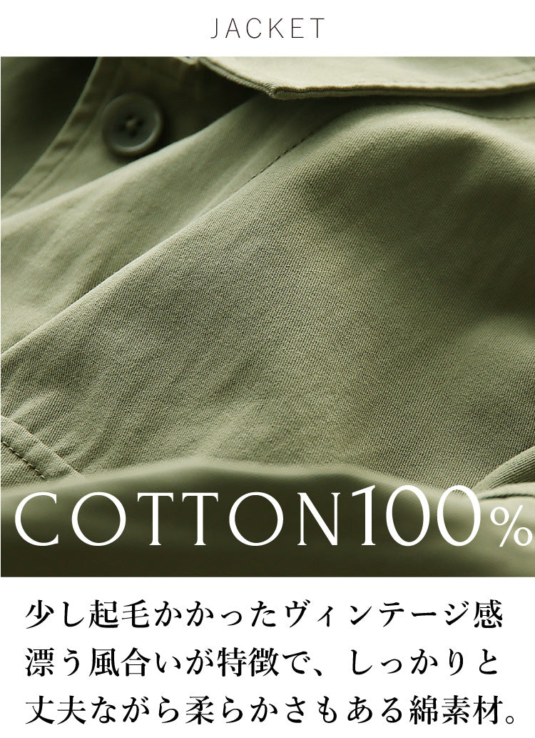 少し起毛かかった独特な風合いやステッチがヴィンテージなニュアンスを与える大人のミリタリージャケット。