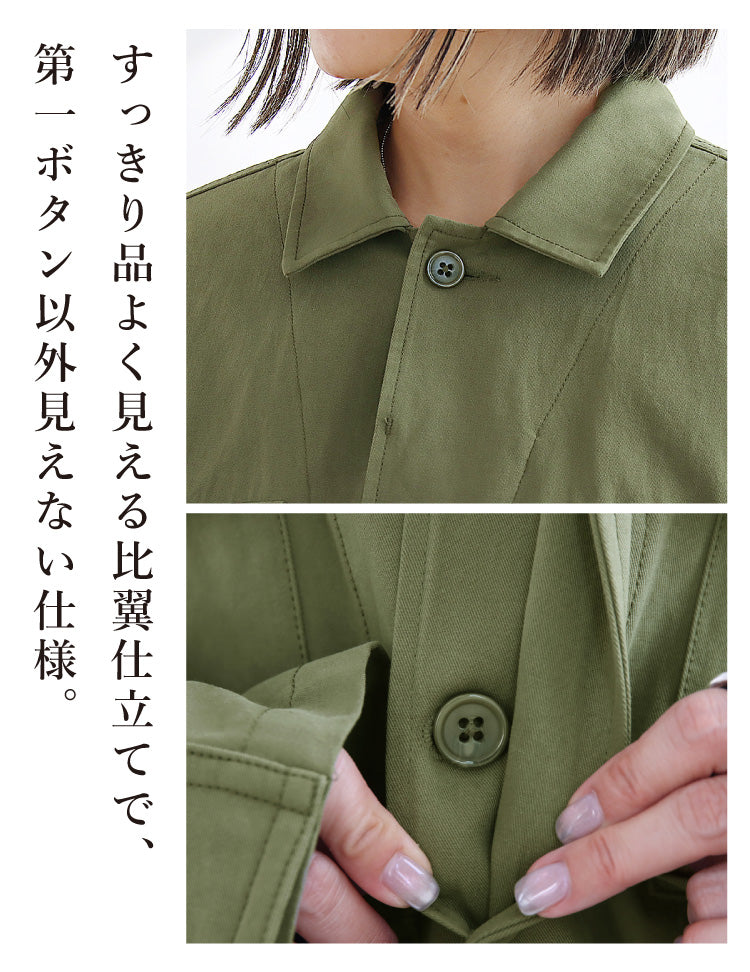 すっきり品よく見える比翼仕立てで、
