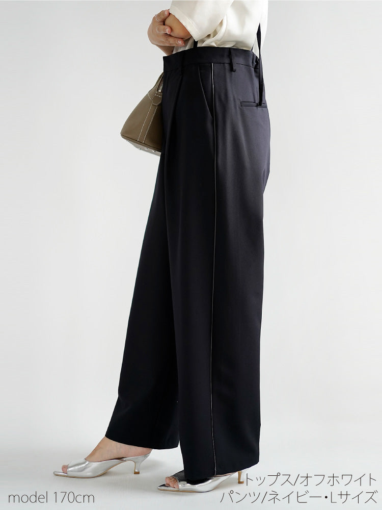 ネイビー×ホワイトは、大人の王道カラー。きちんと見えるのに優しい印象を与えてくれる頼れる配色です。