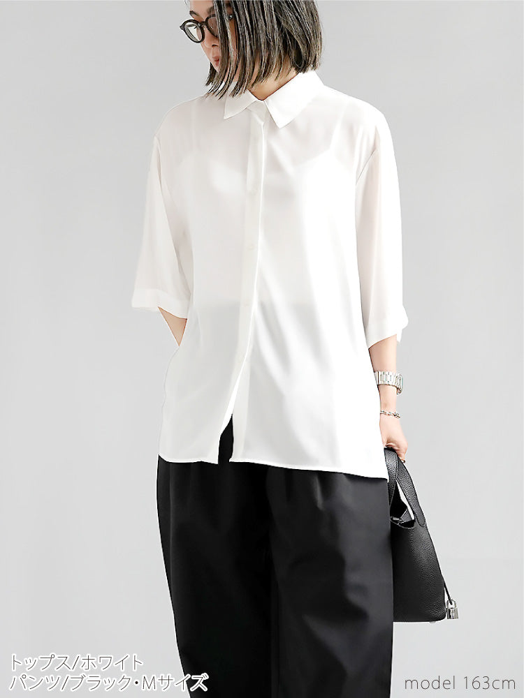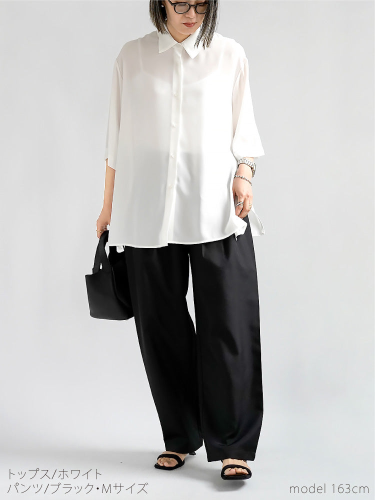 やわらかでとろみのあるシフォン生地を使用し、美しいドレープで女性らしさを演出。