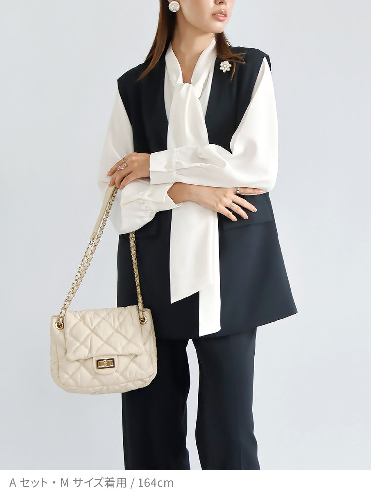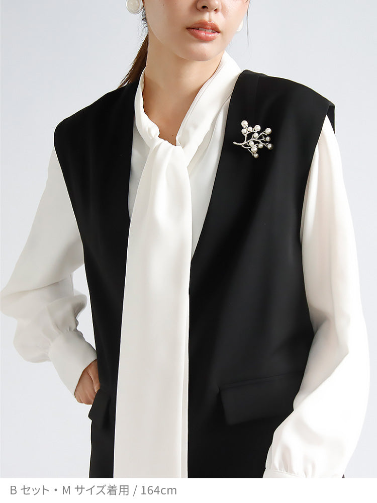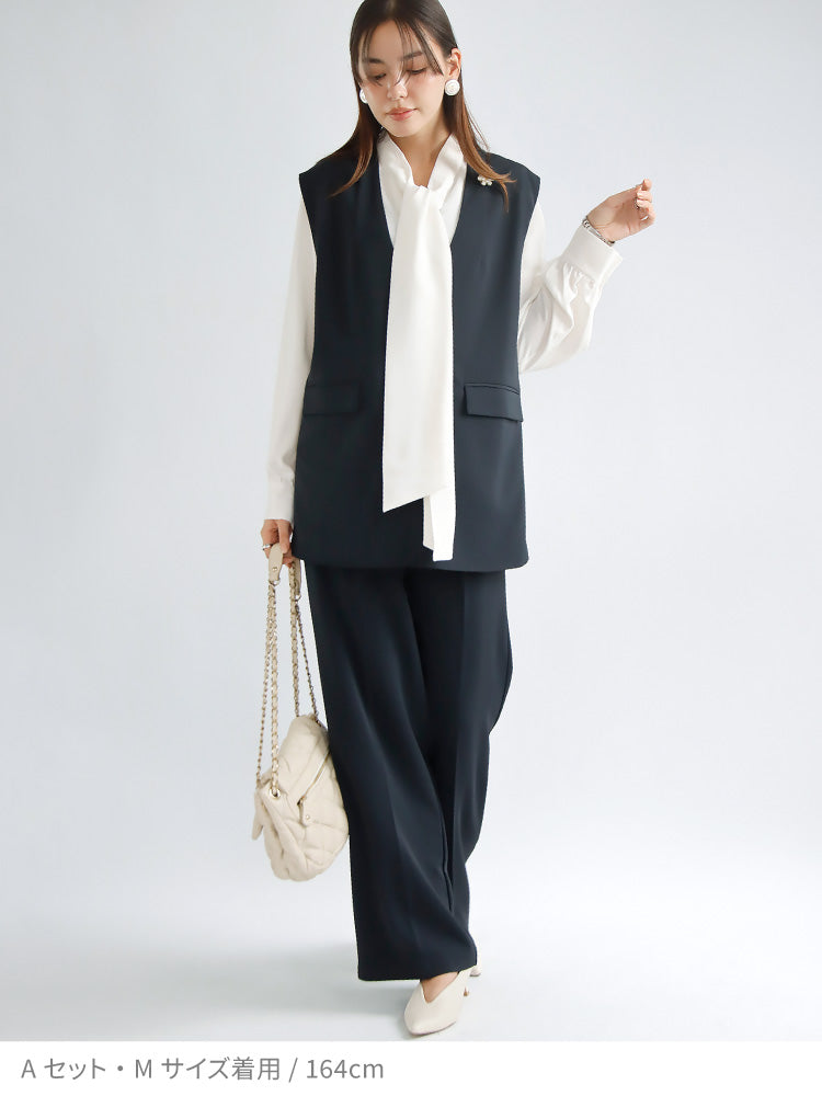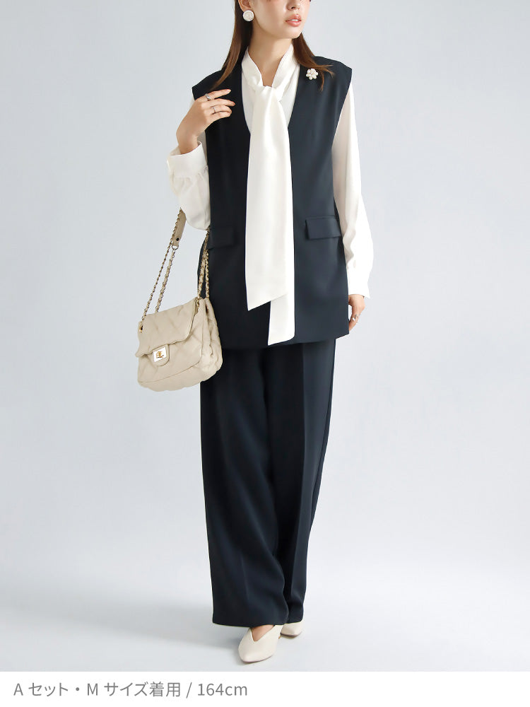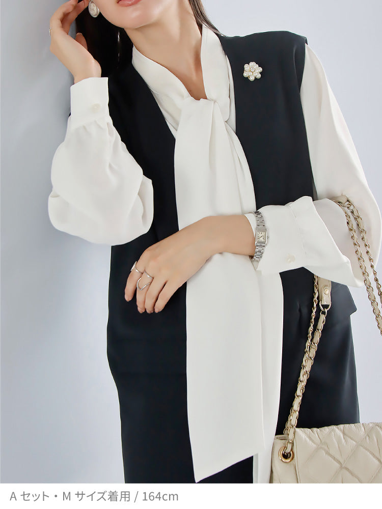 ・ボウタイで胸元のボリュームを隠し体型カバーも叶う1枚