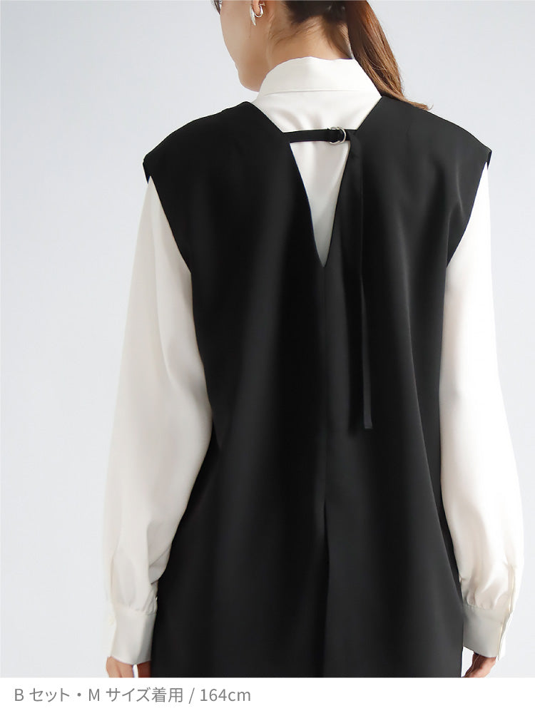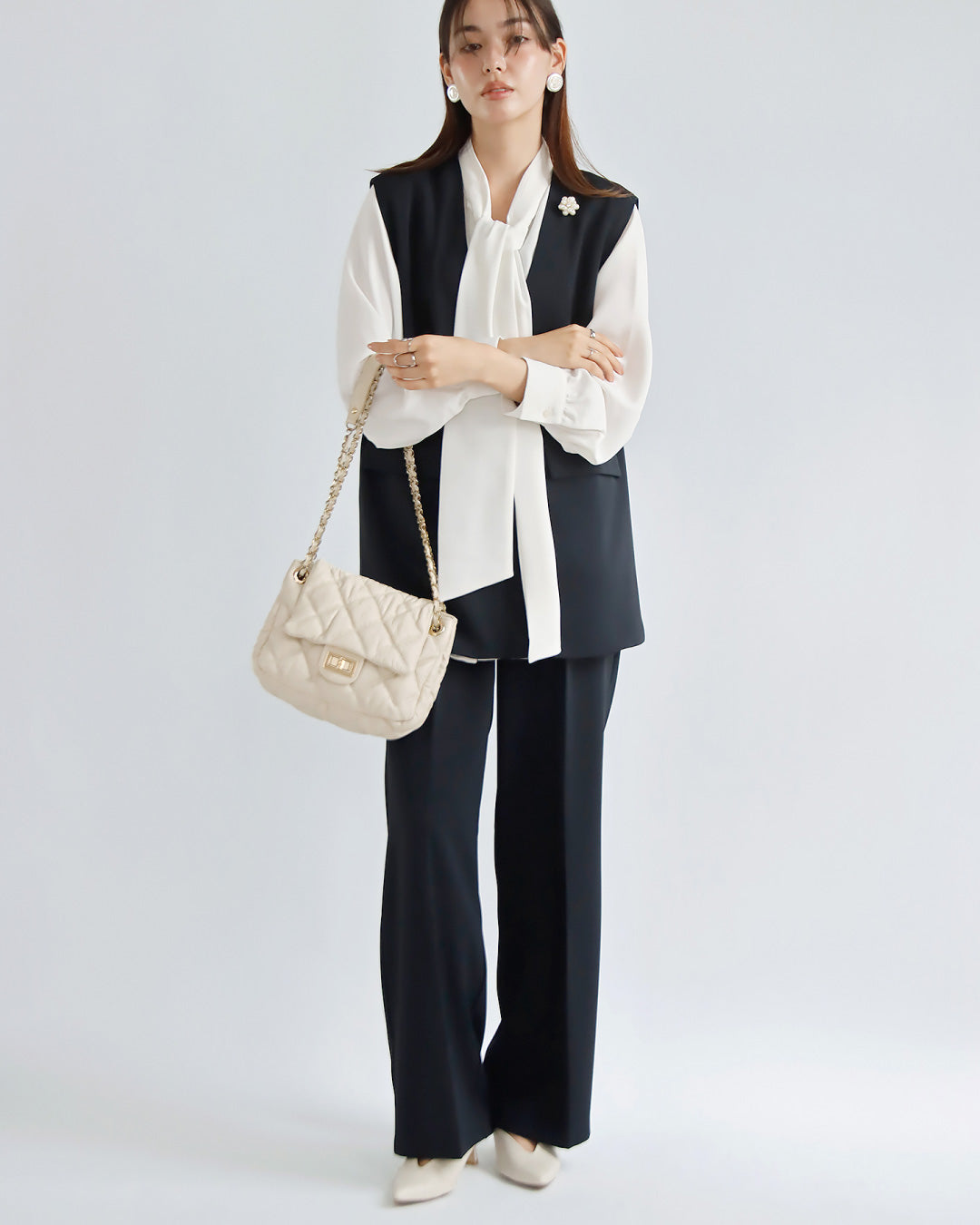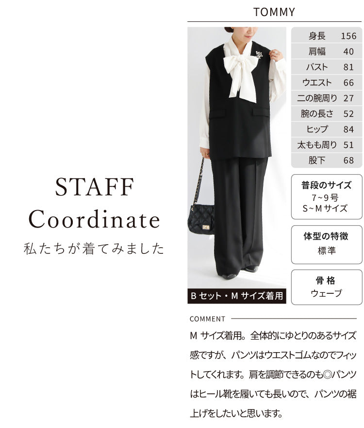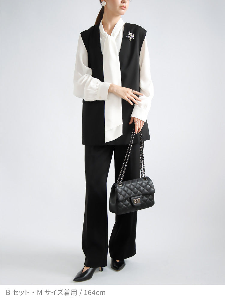 ・ボウタイで胸元のボリュームを隠し体型カバーも叶う1枚