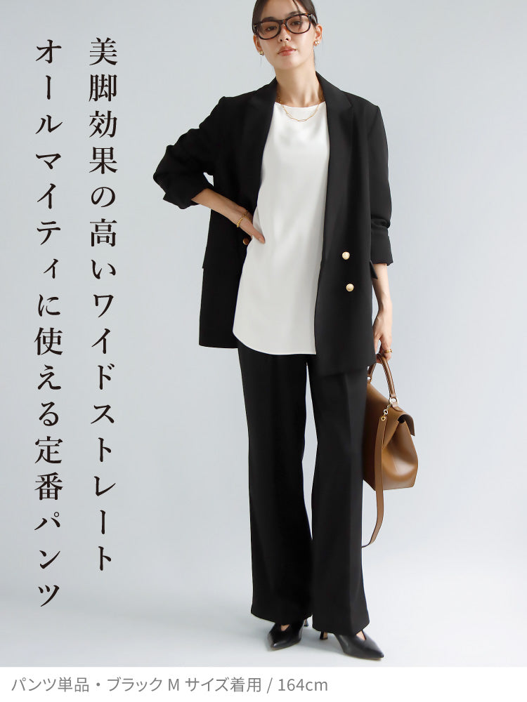 ・太すぎないワイドストレートで脚のラインを隠しつつ細見えが叶います