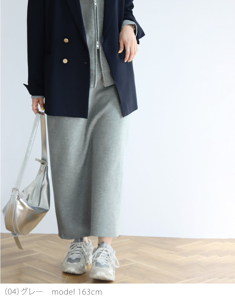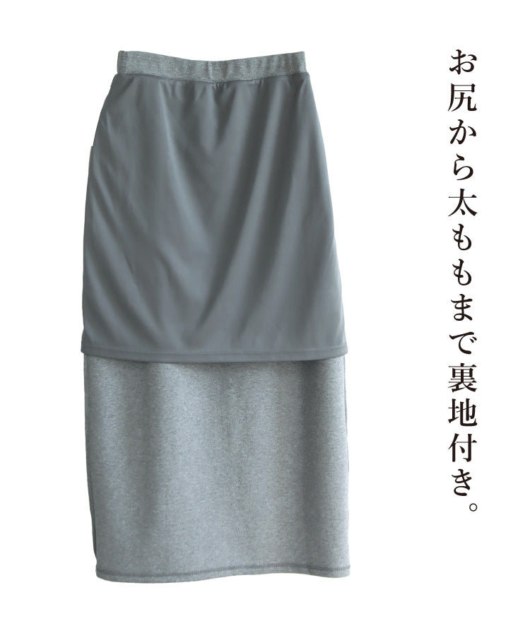 後スリットと伸縮性で動きやすく、裏地付きで安心。