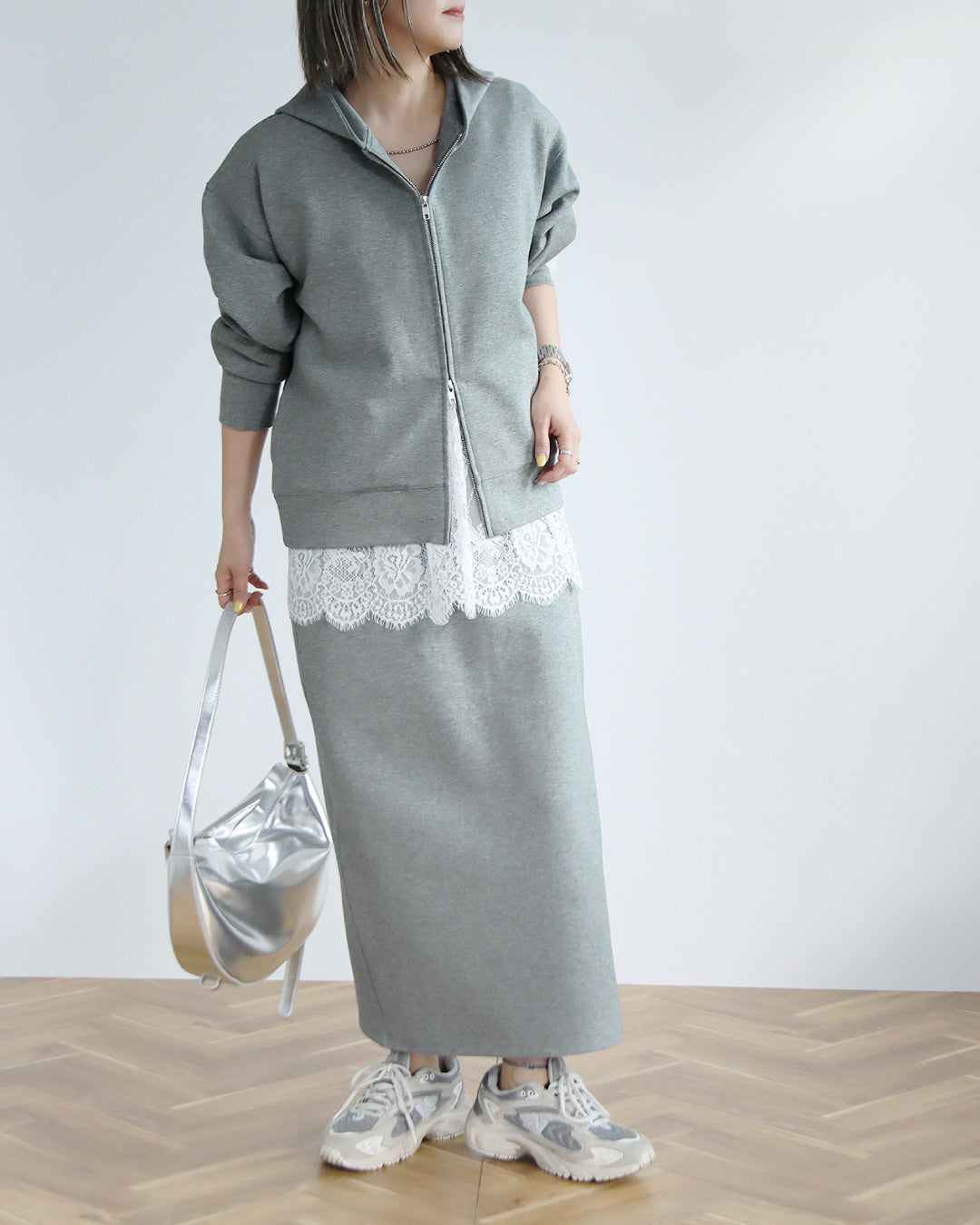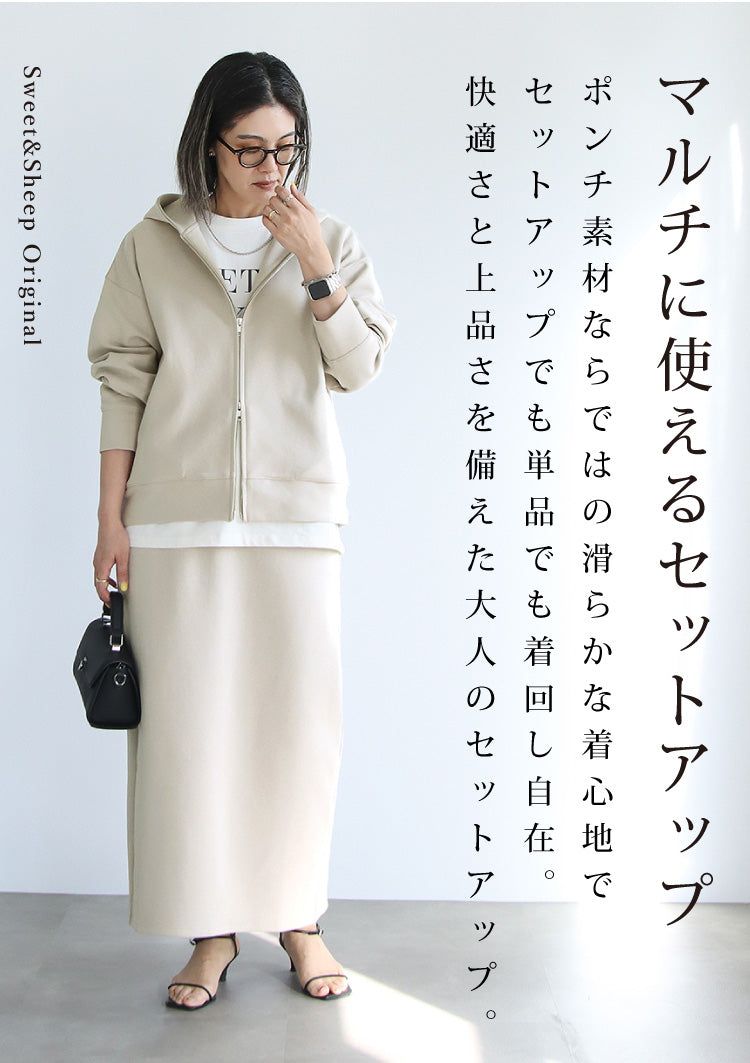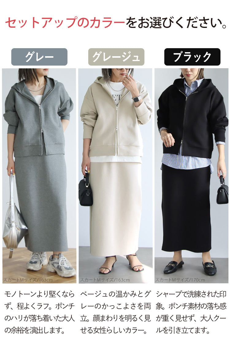 【予約商品2月中~下旬入荷予定】ポンチパーカー×タイトスカートセットアップ