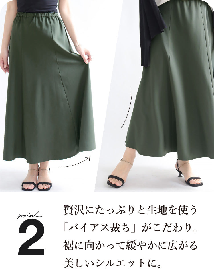 さらに、贅沢に生地を使う「バイアス裁ち」により、裾に向かって緩やかに広がる美しいシルエットを実現。
