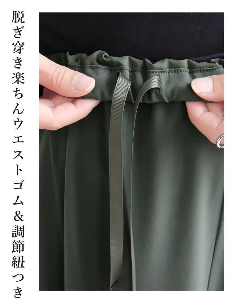 着脱しやすいウエストゴム&調節紐付きで、快適な着心地。