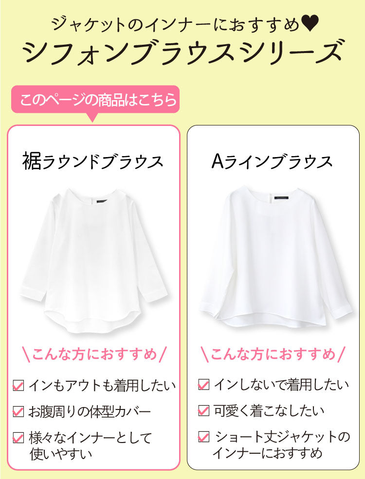シンプルなデザインだからこそどんなシーンでも使いやすいブラウス。裾カーブデザインで、