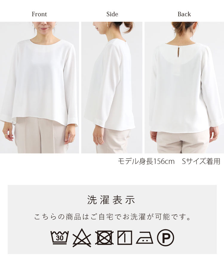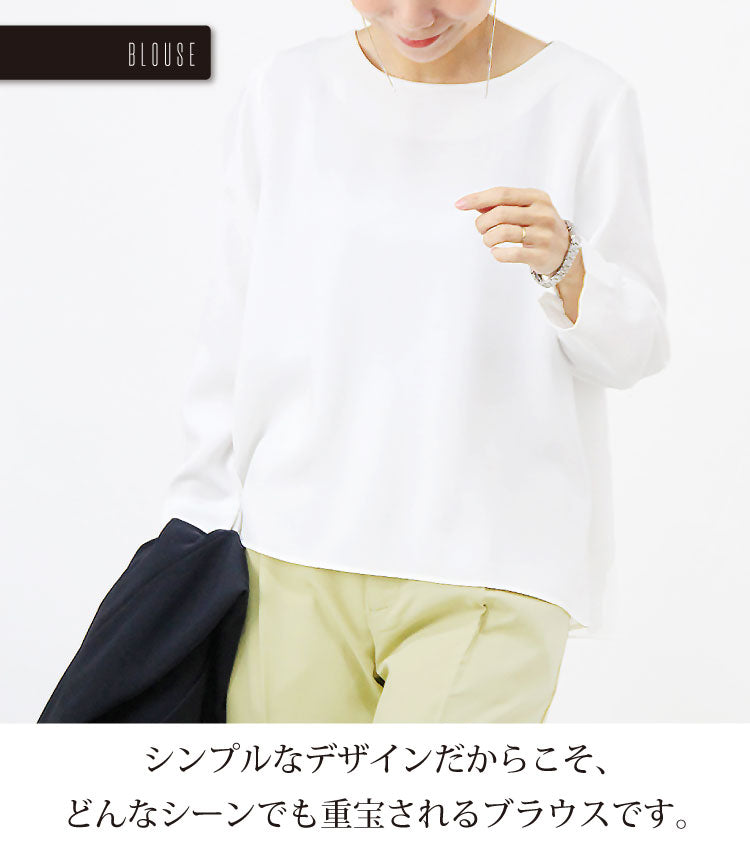 シンプルなデザインのAラインブラウス。下に向かって広がるフレアデザインは