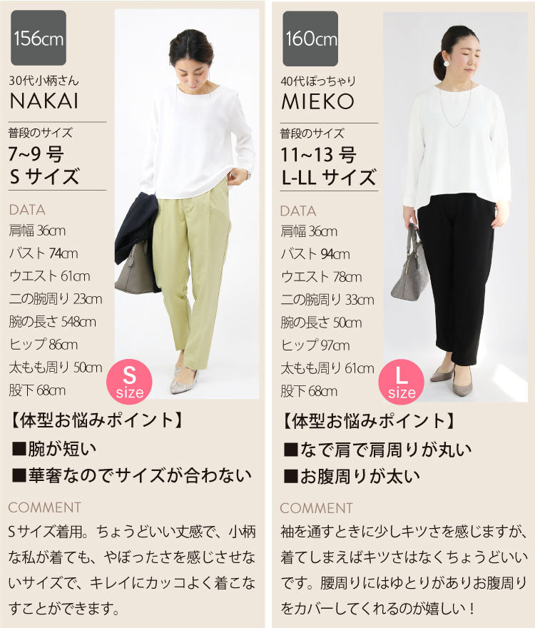 腰回りをスッキリ見せナチュラルに体型カバーをしてくれます。