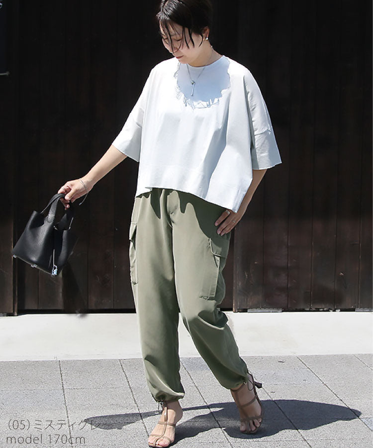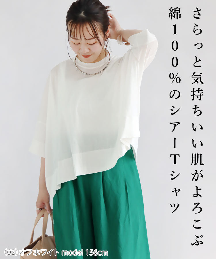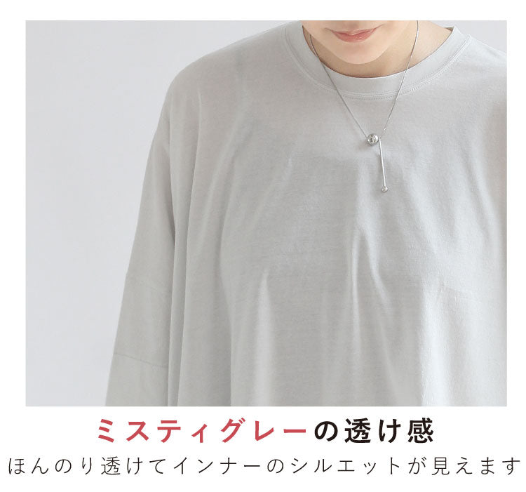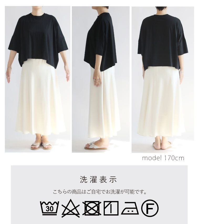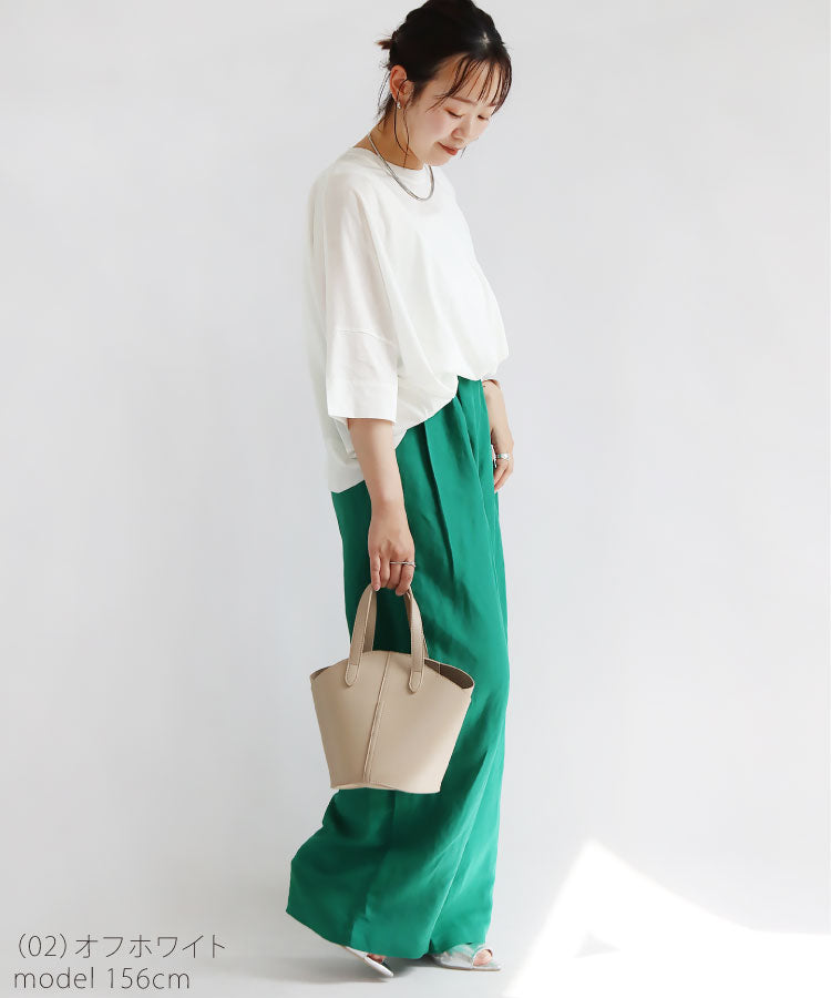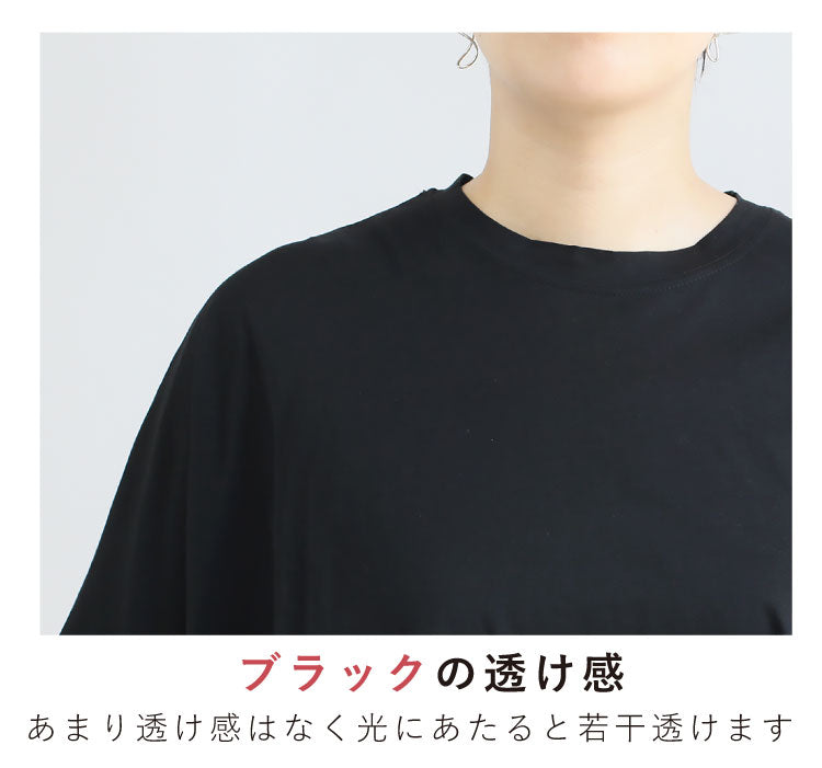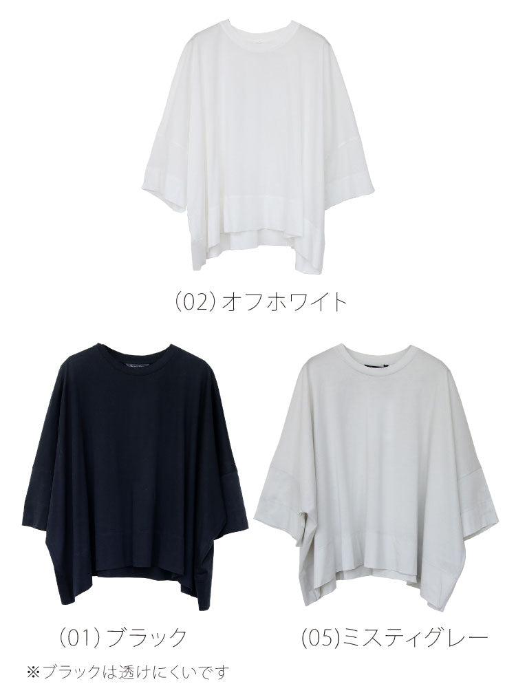 あきすぎない襟ぐりや、二の腕がしっかり隠れる袖丈が腕と胸周りを華奢見えに。