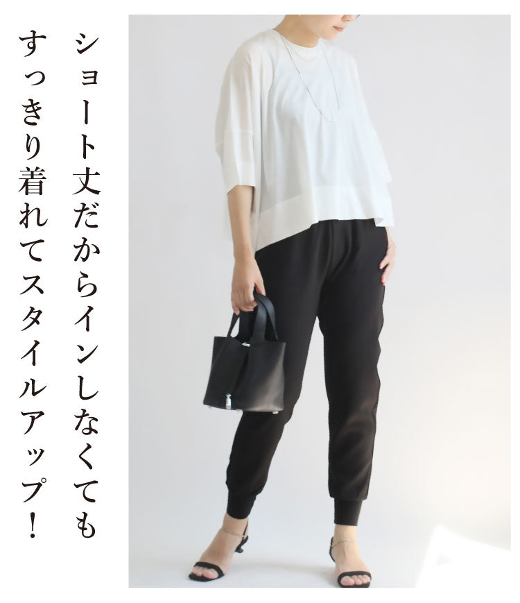ショート丈だからインしなくてもすっきり着れてスタイルアップ。