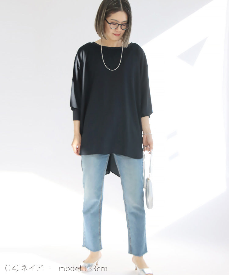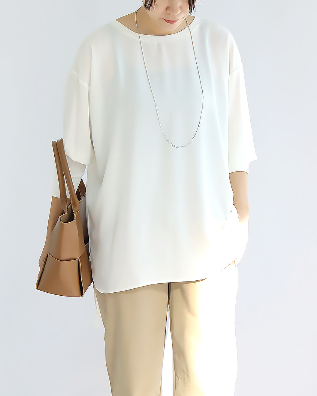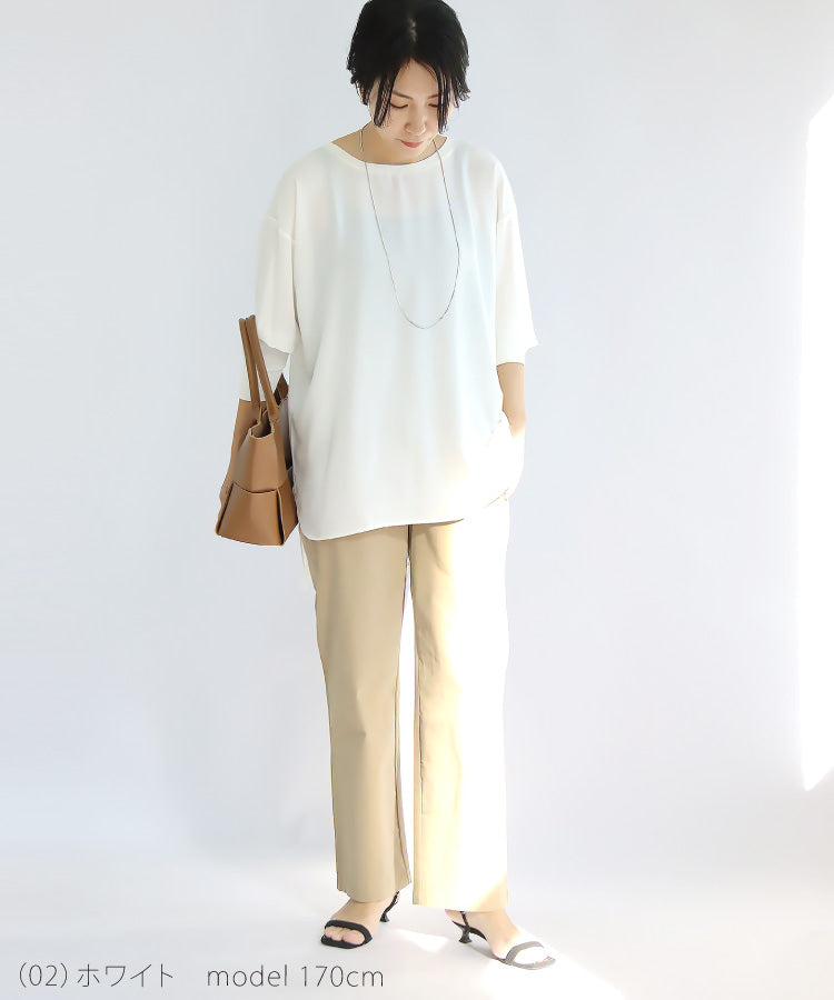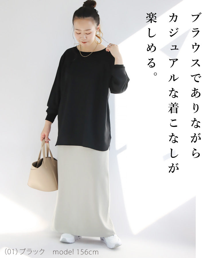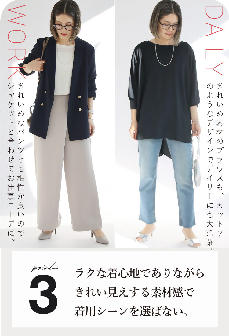 きれいめ素材のブラウスも、カットソー