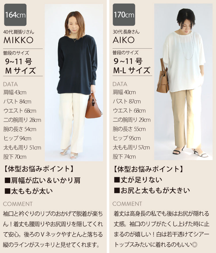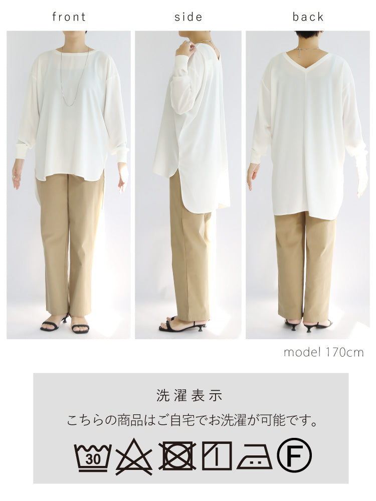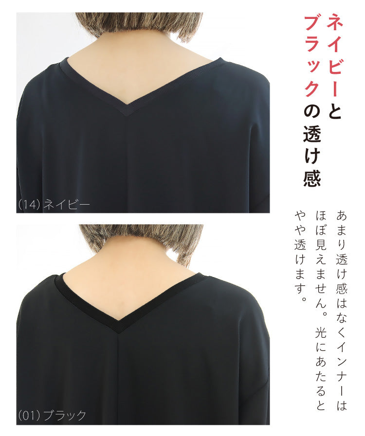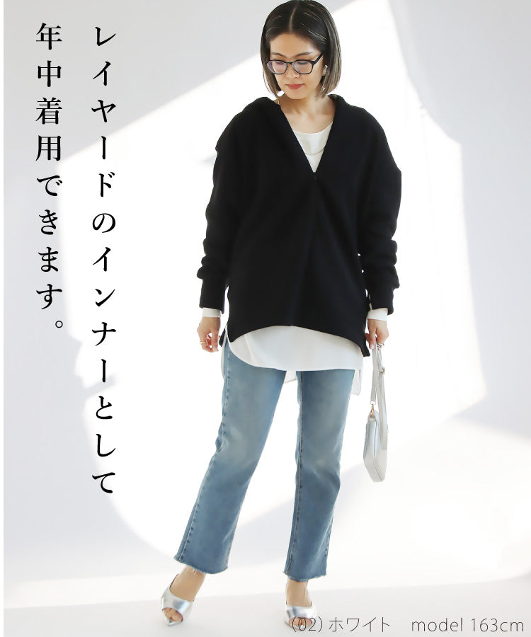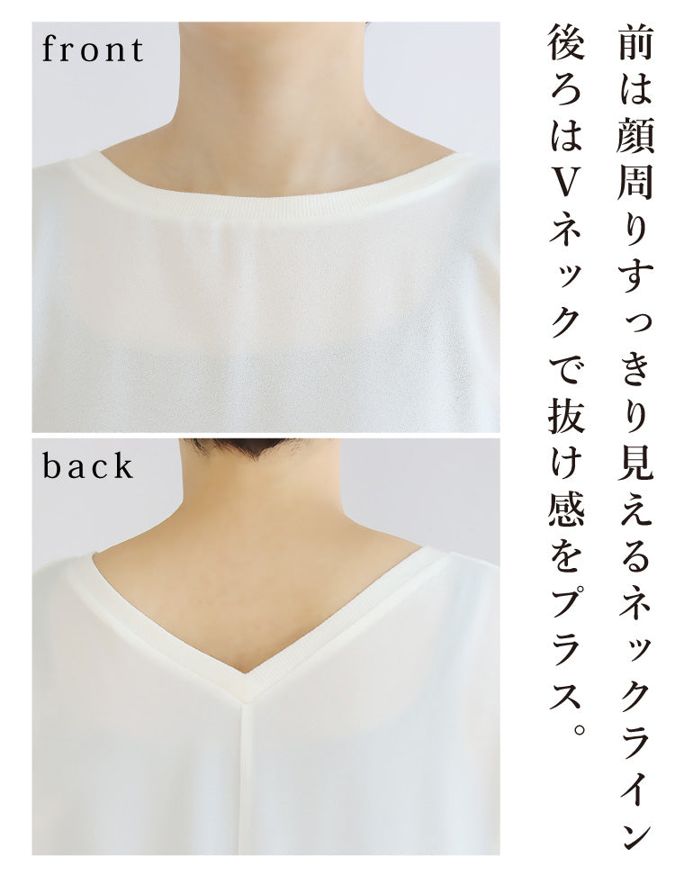 後ろはVネックで抜け感をプラス。
