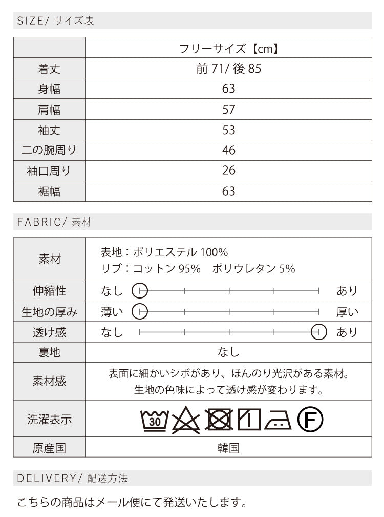 シワになりにくくお手入れ簡単な素材です。