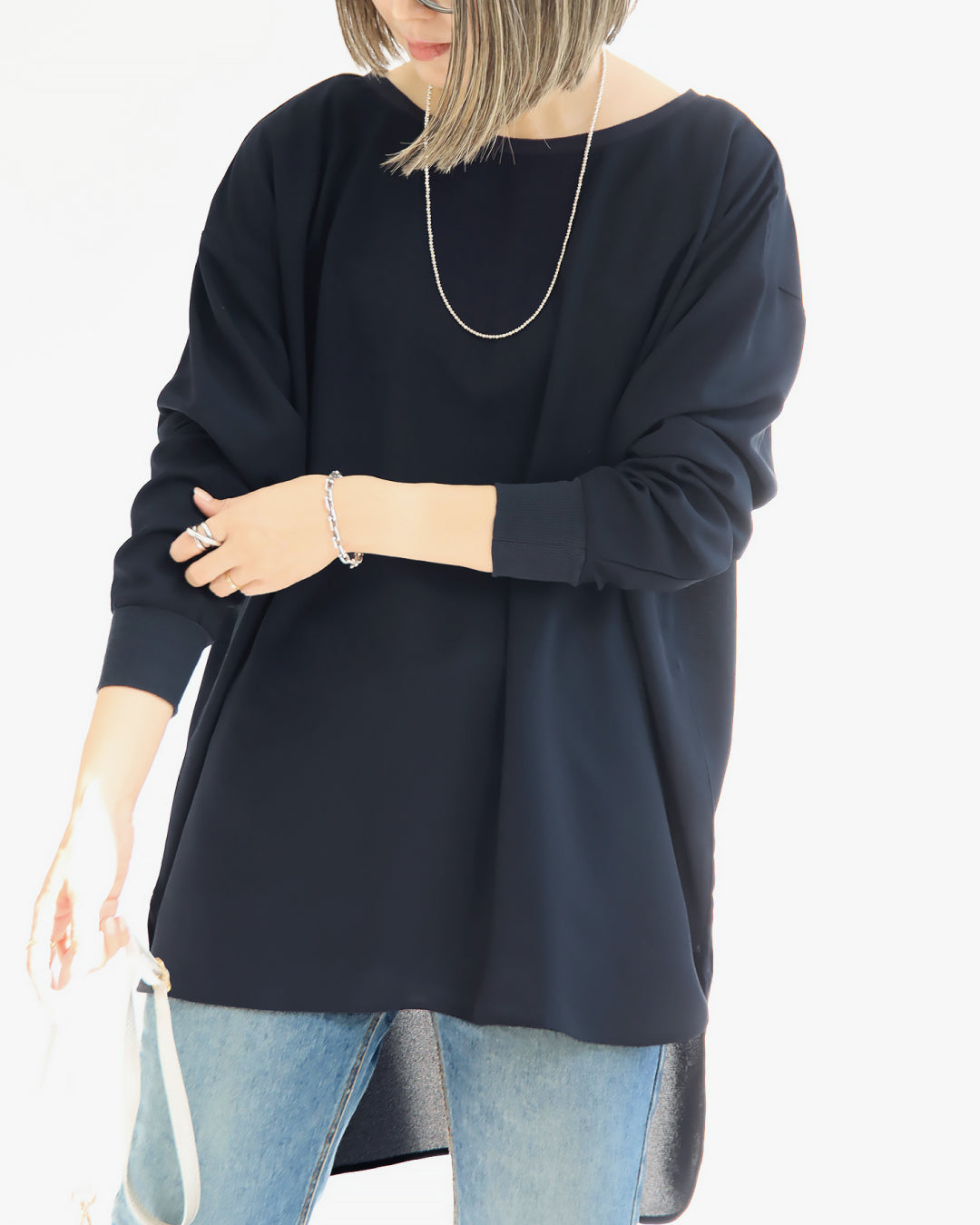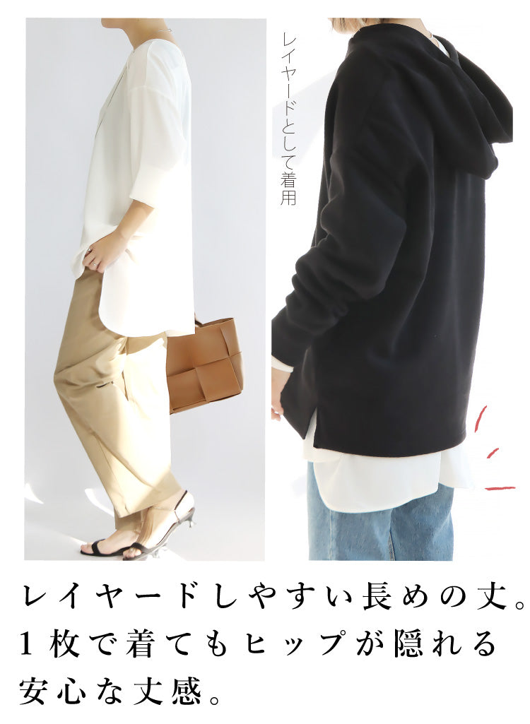 レイヤードしやすい長めの丈。