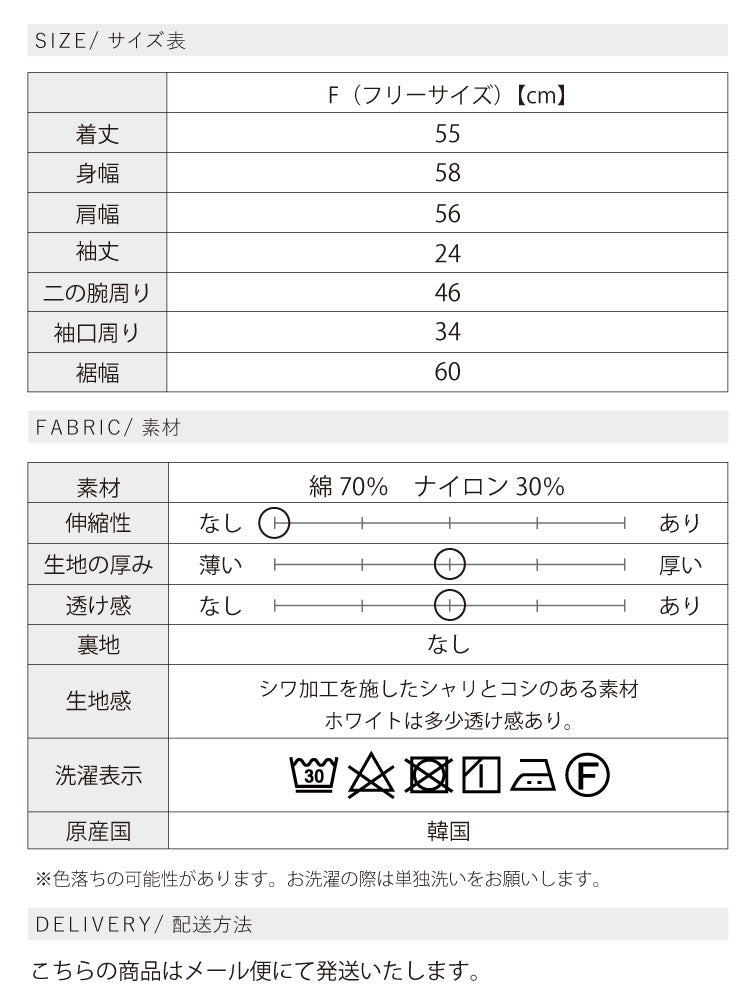 ※濃色の場合、色落ちの可能性があります。お洗濯の際は単独洗いをお願いします。