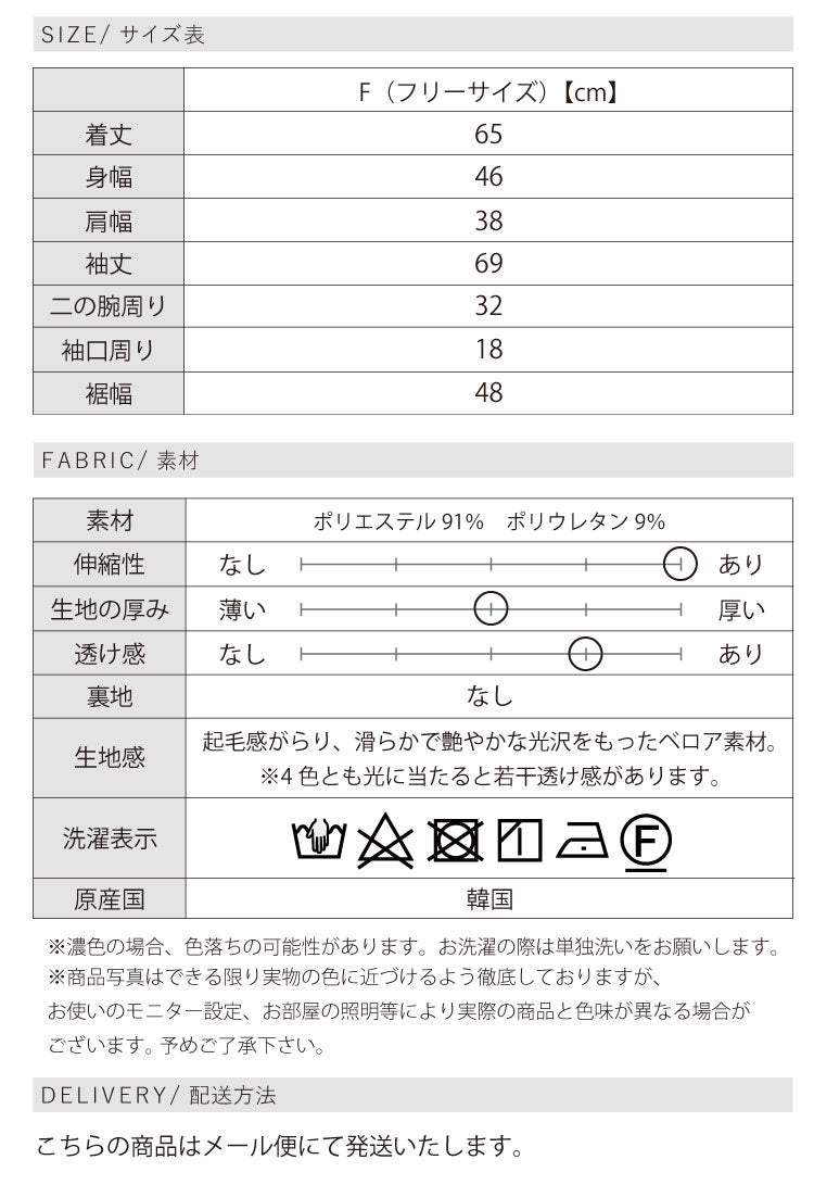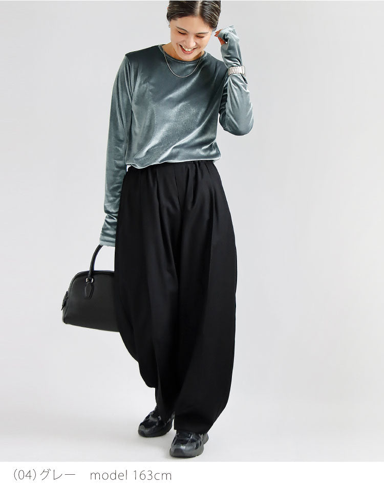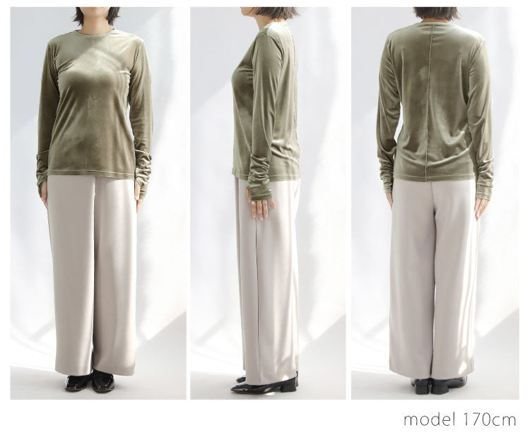 伸縮性あるベロア素材で着心地ラクちん。