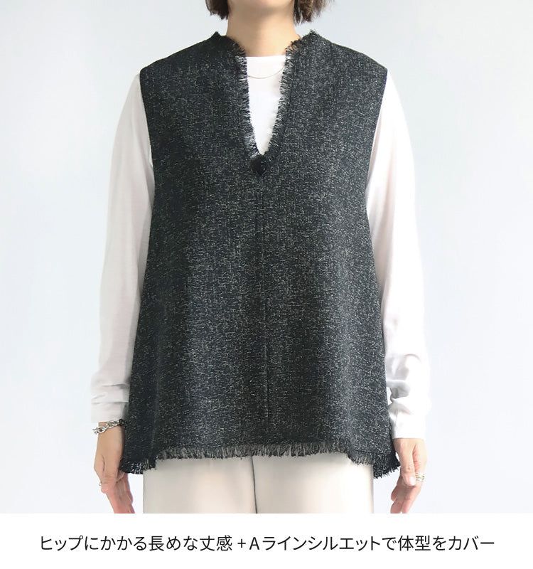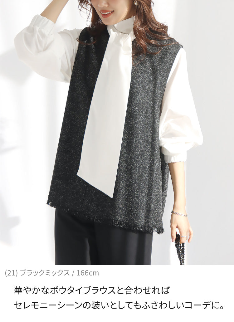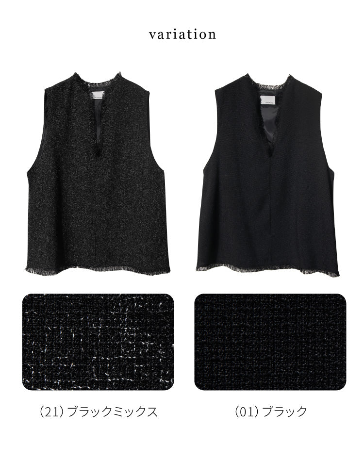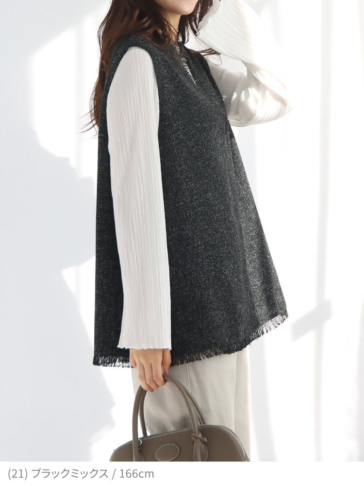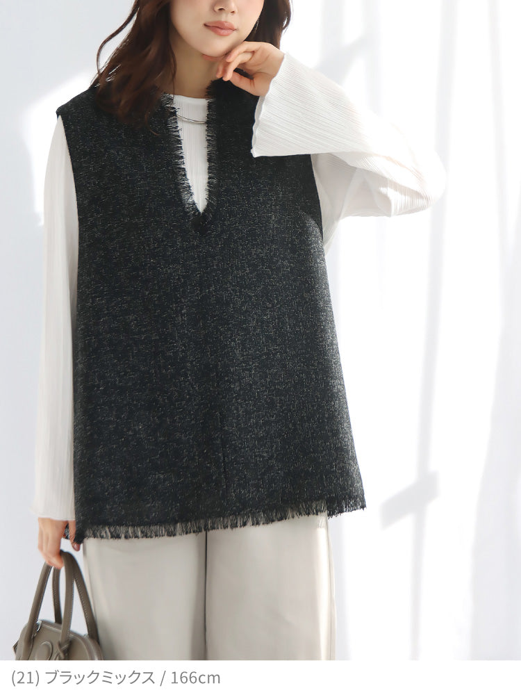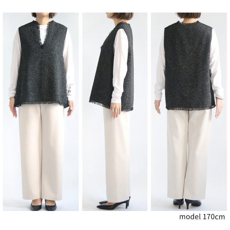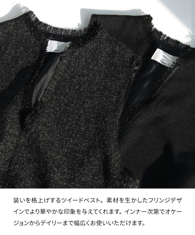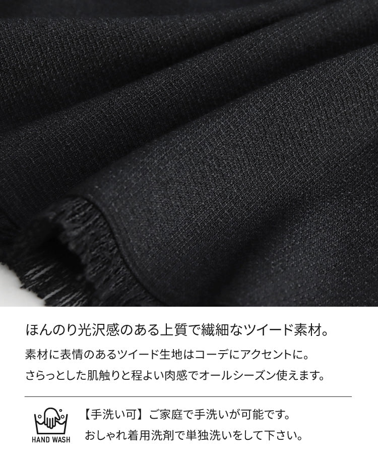 素材に表情のあるツイード生地はコーデにアクセントに。