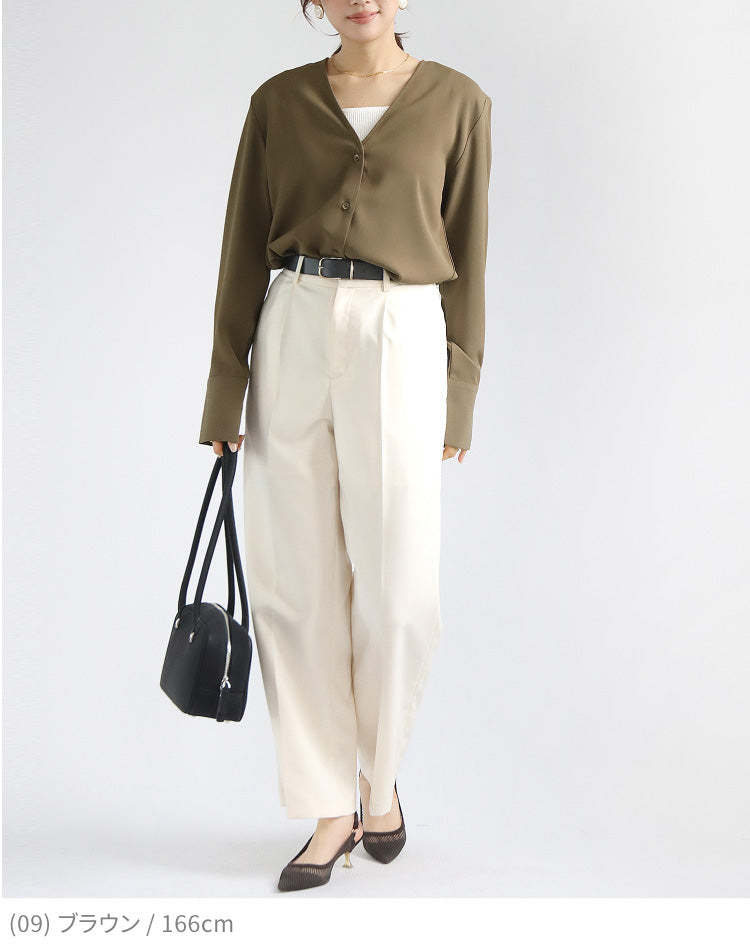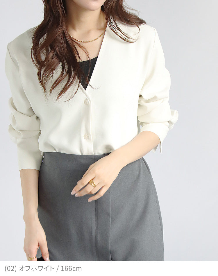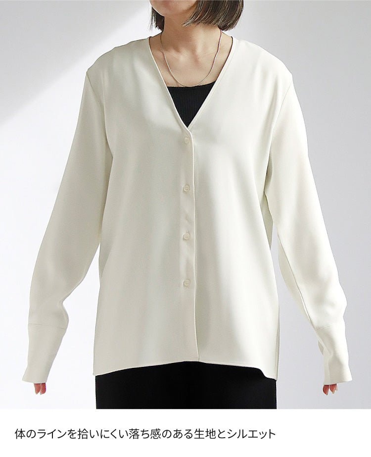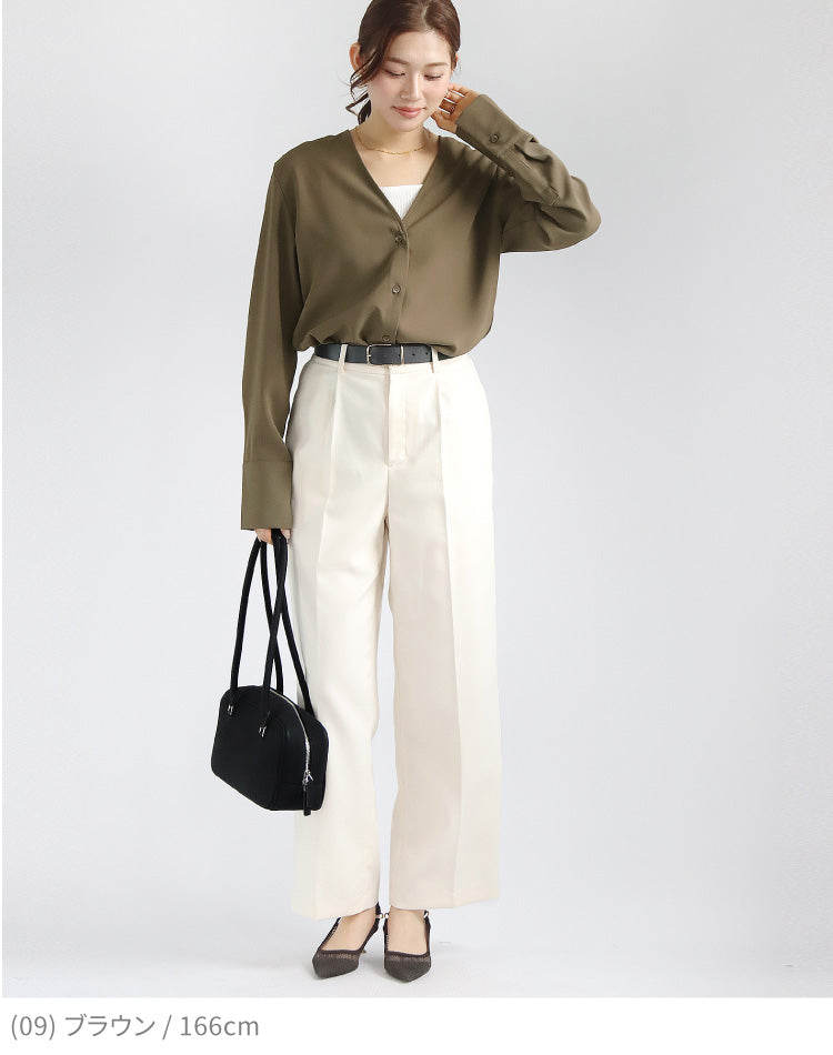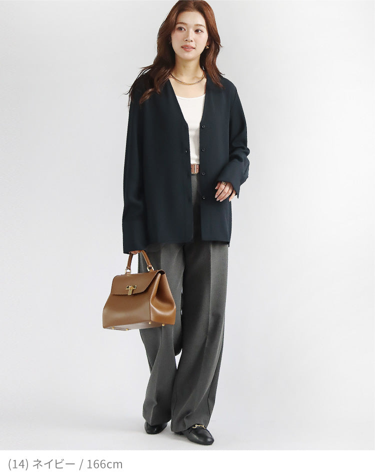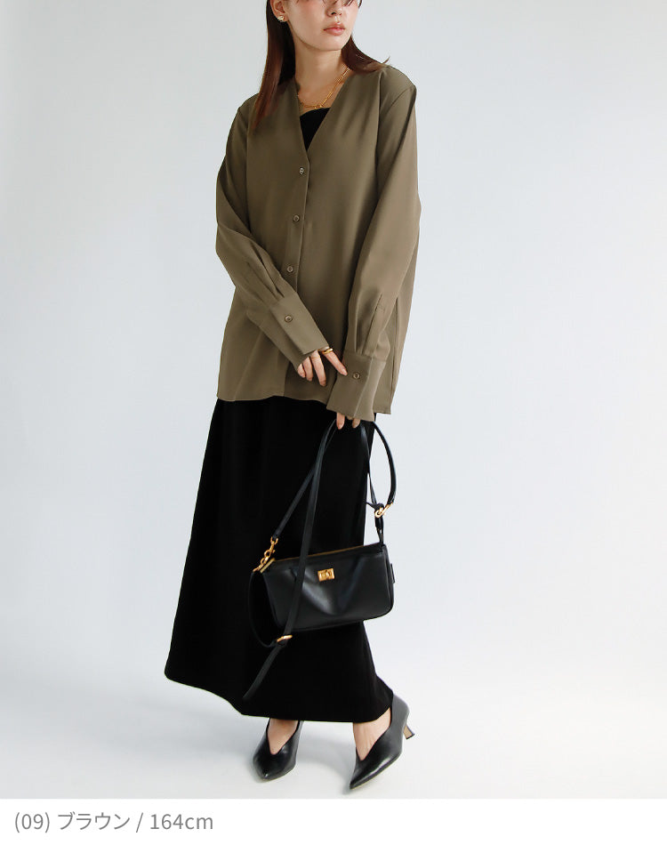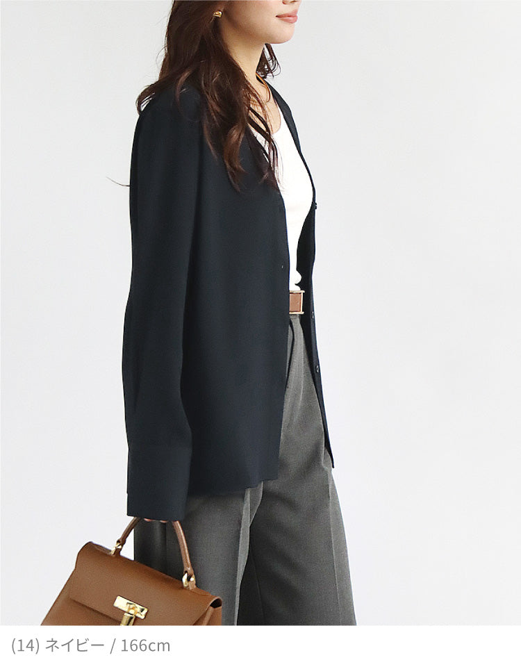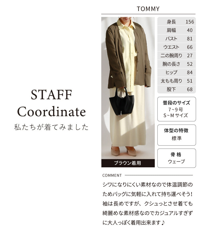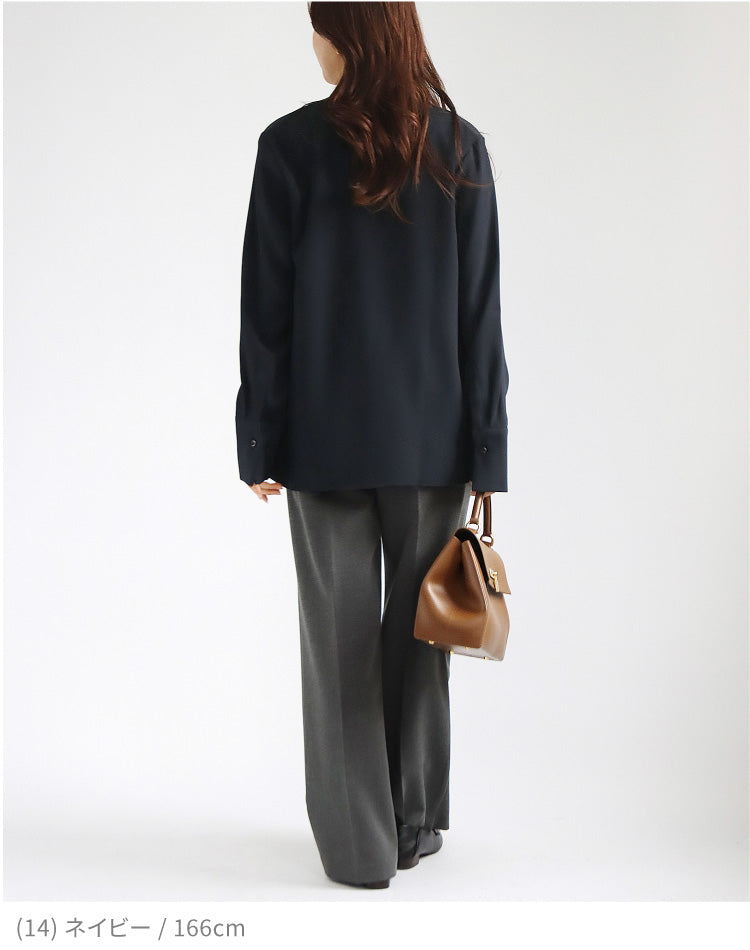 程よいハリとなめらかな素材を使用し、一枚できれい目に見えながらもこなれ感ある魅力的な一着に仕上げました。