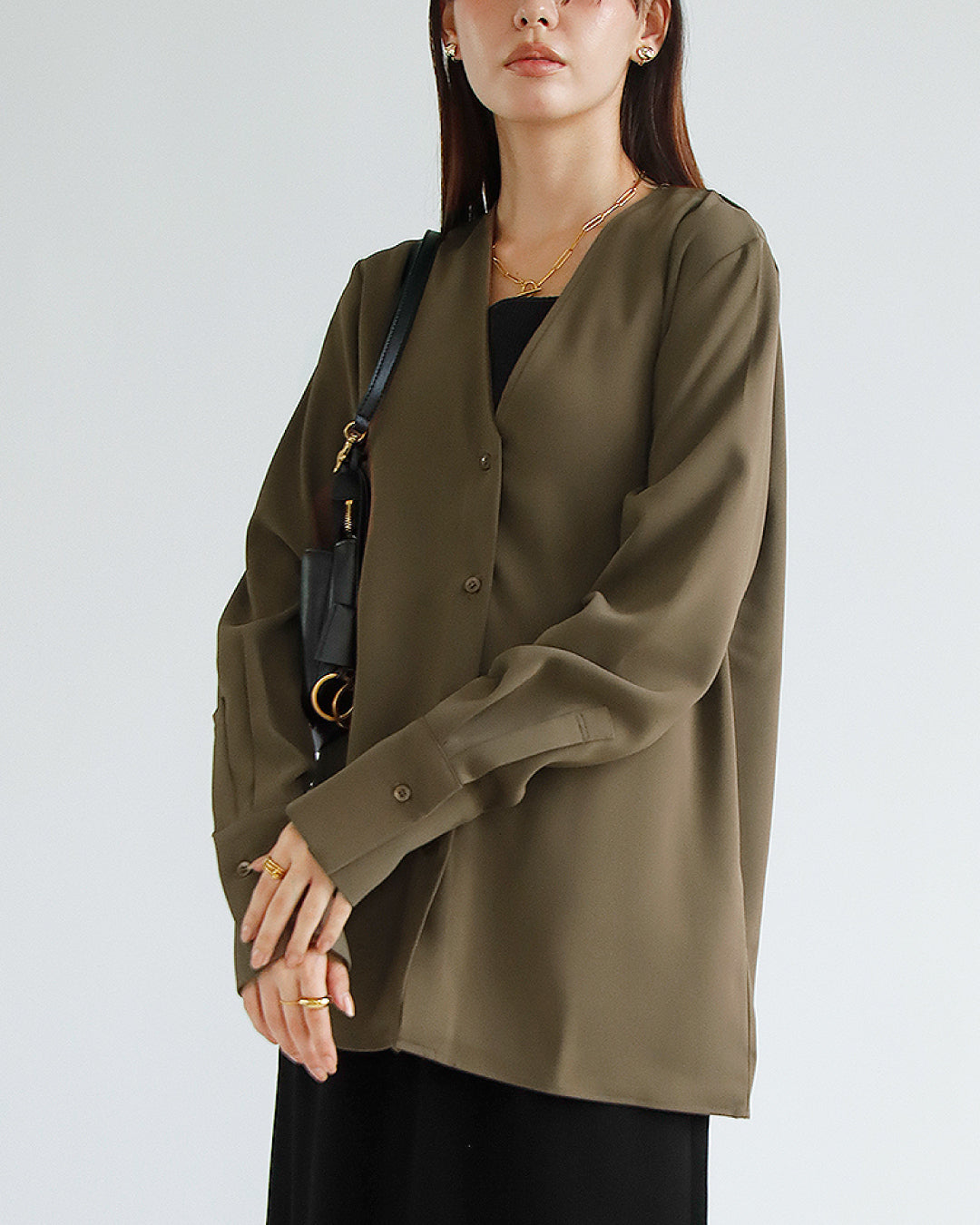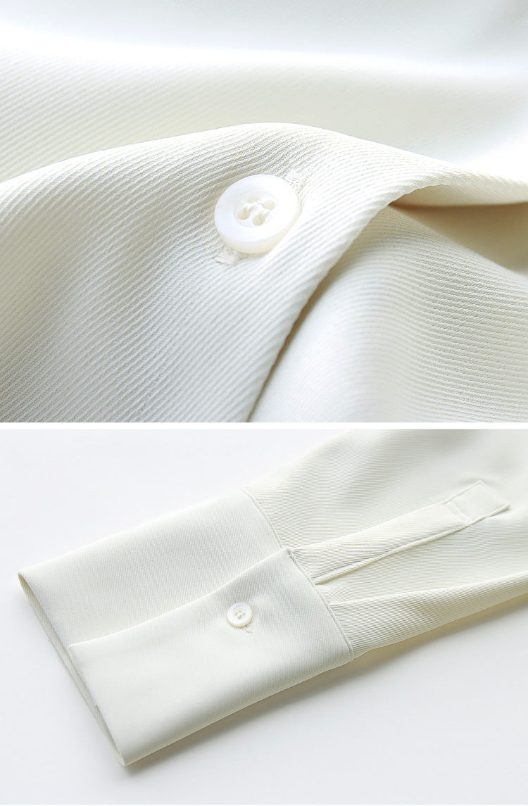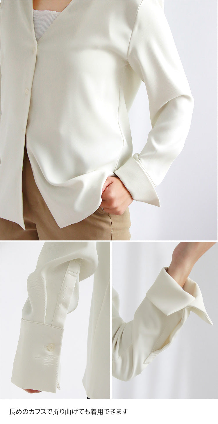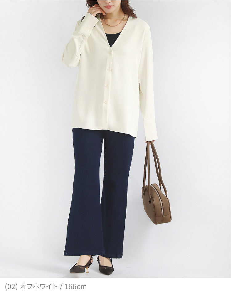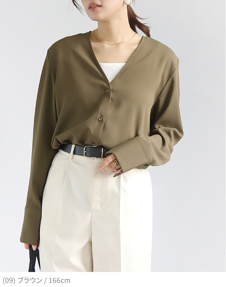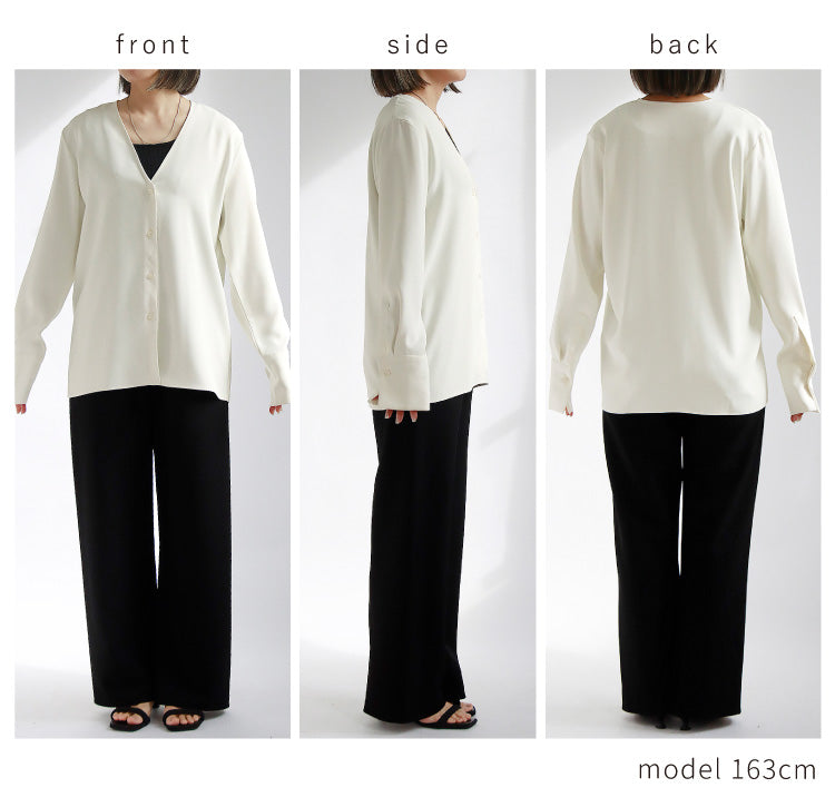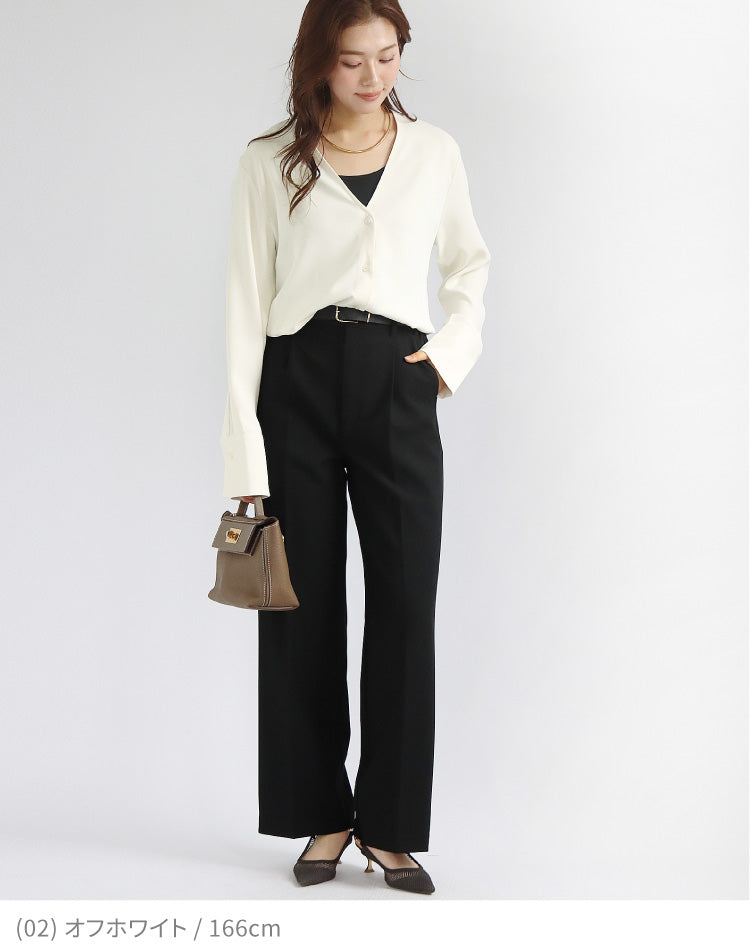 程よいハリとなめらかな素材を使用し、一枚できれい目に見えながらもこなれ感ある魅力的な一着に仕上げました。