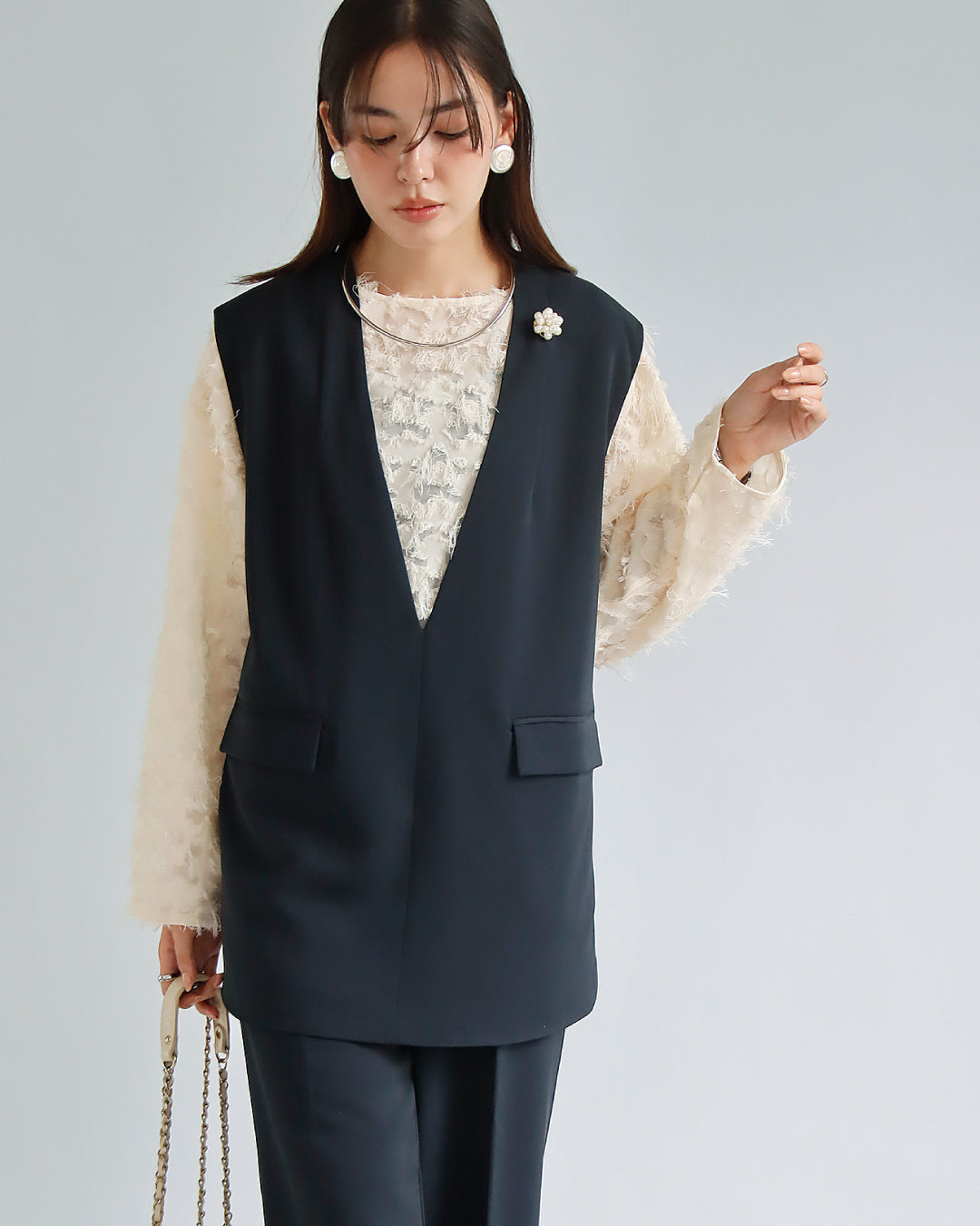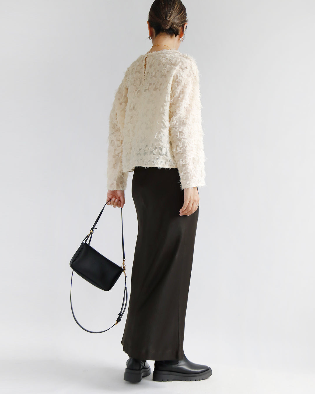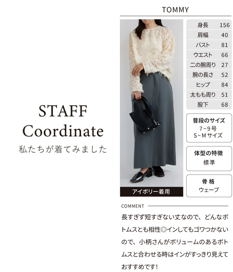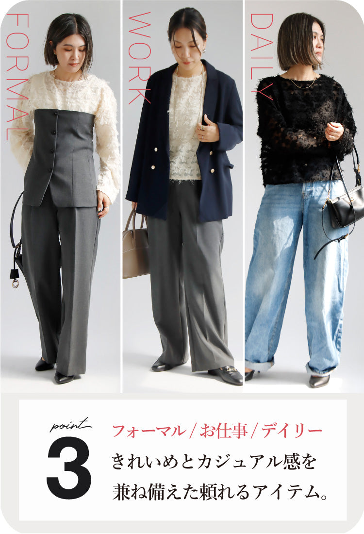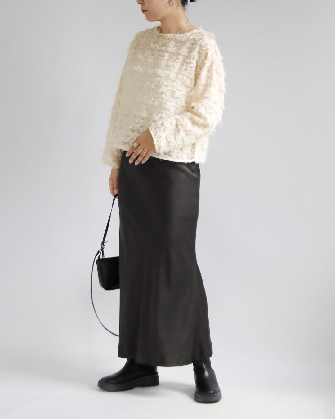 インナーは同色系を選ぶと同調されてまとまりが生まれ、大人っぽい洗練された印象に仕上がります。