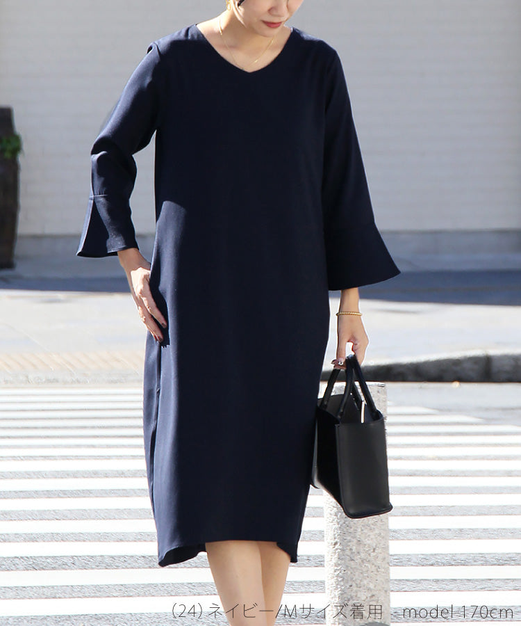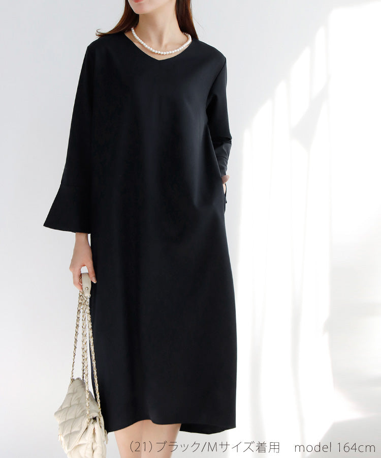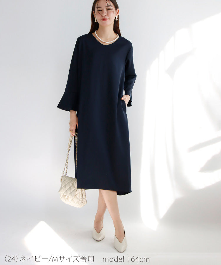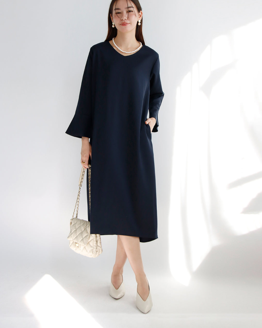 女性らしいベルスリーブがきれいなシルエットを演出します。