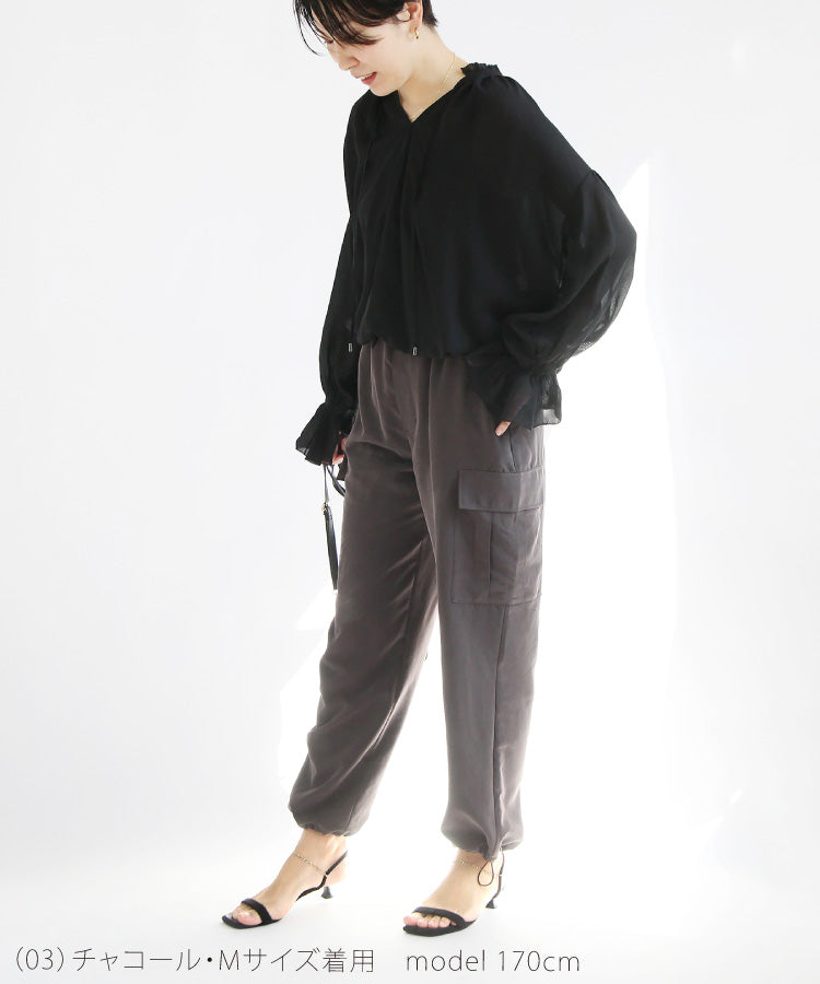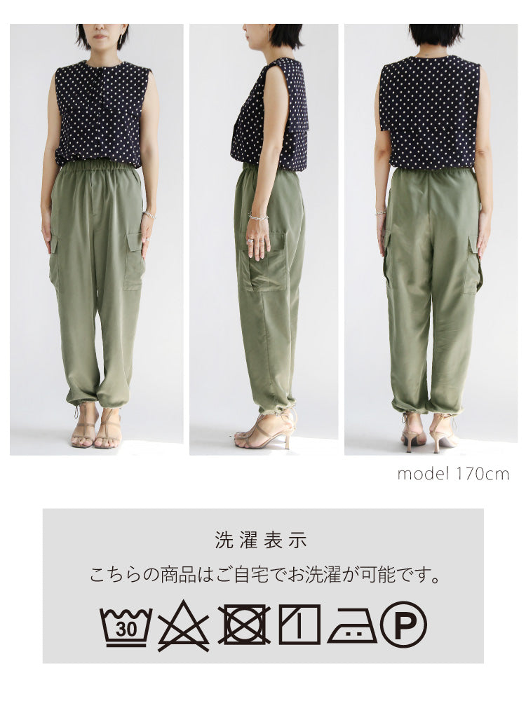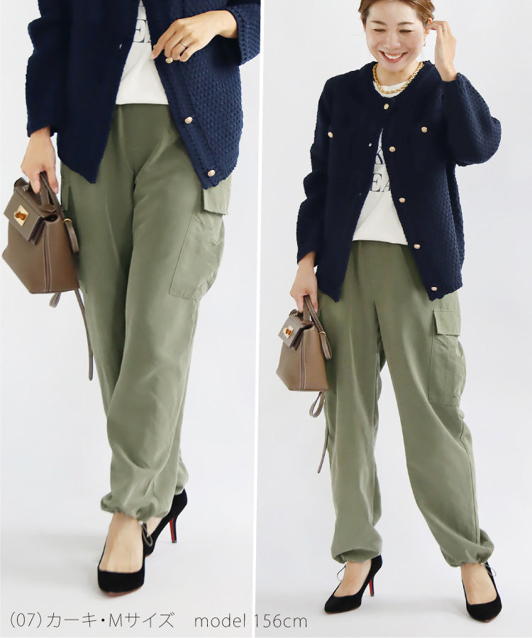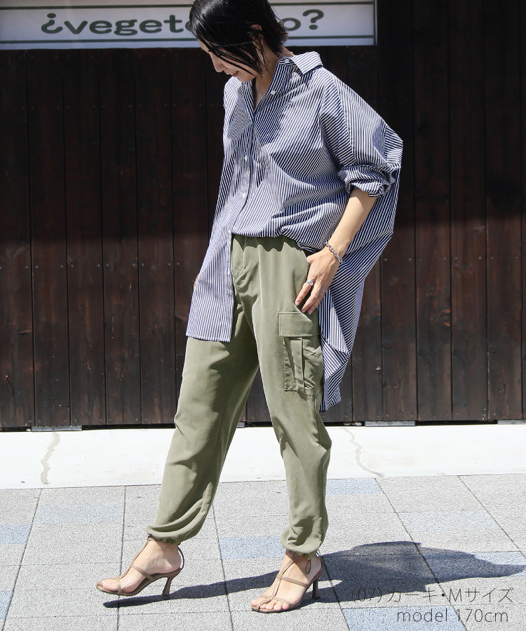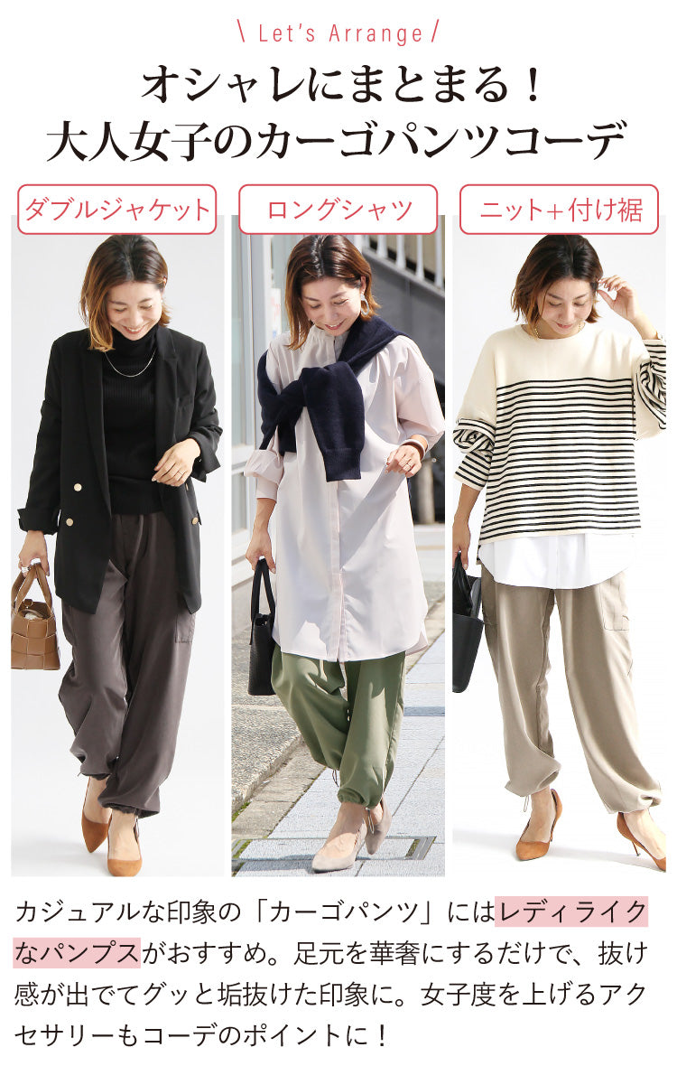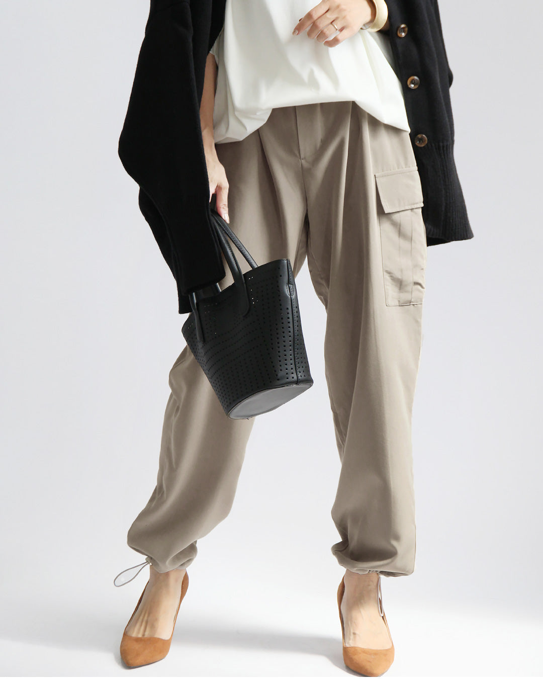 カジュアルな印象の「カーゴパンツ」には華奢見えする小物使いが鉄則。