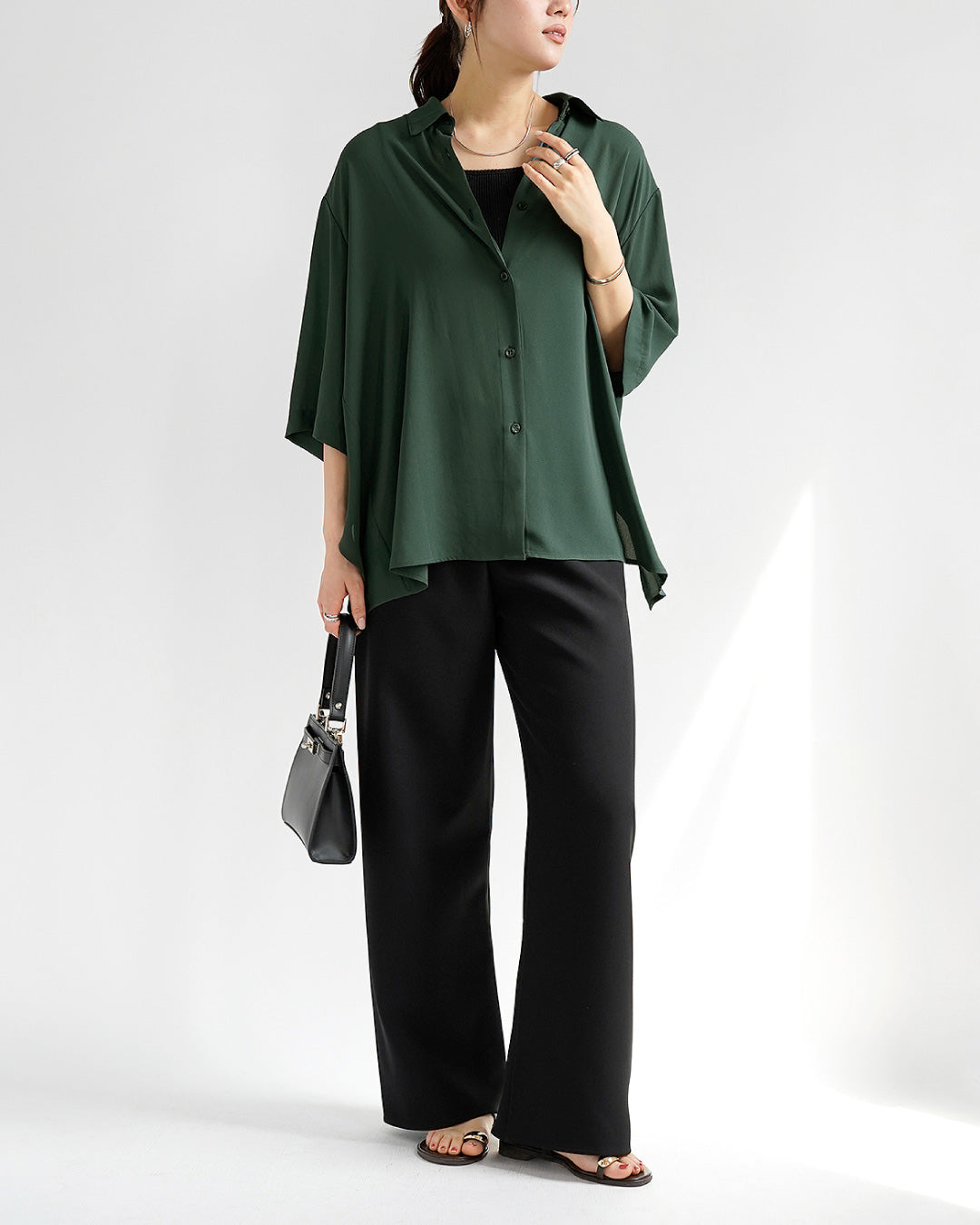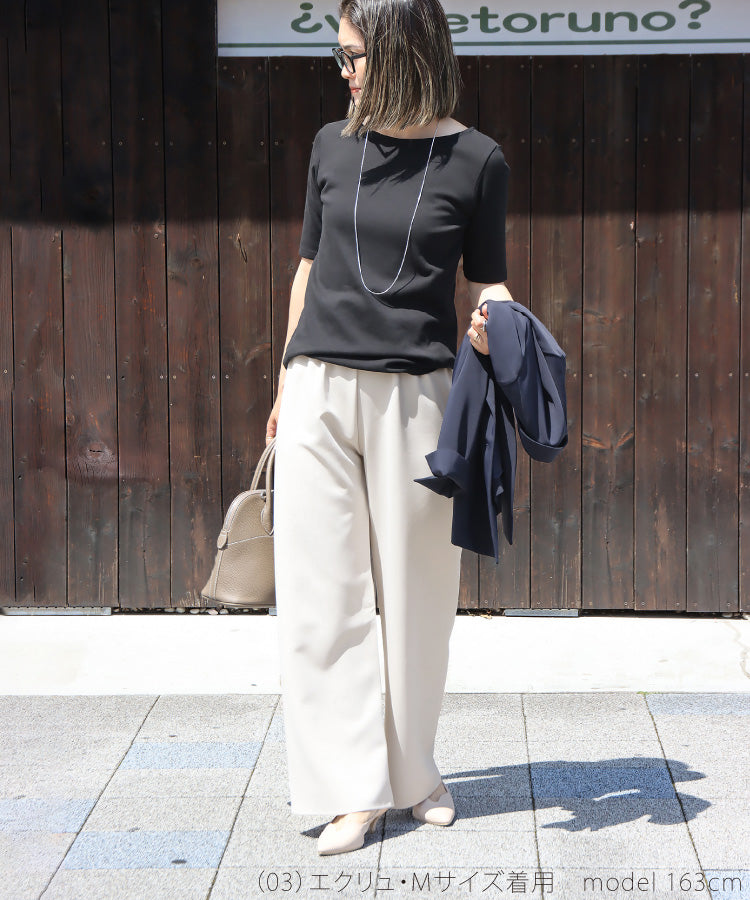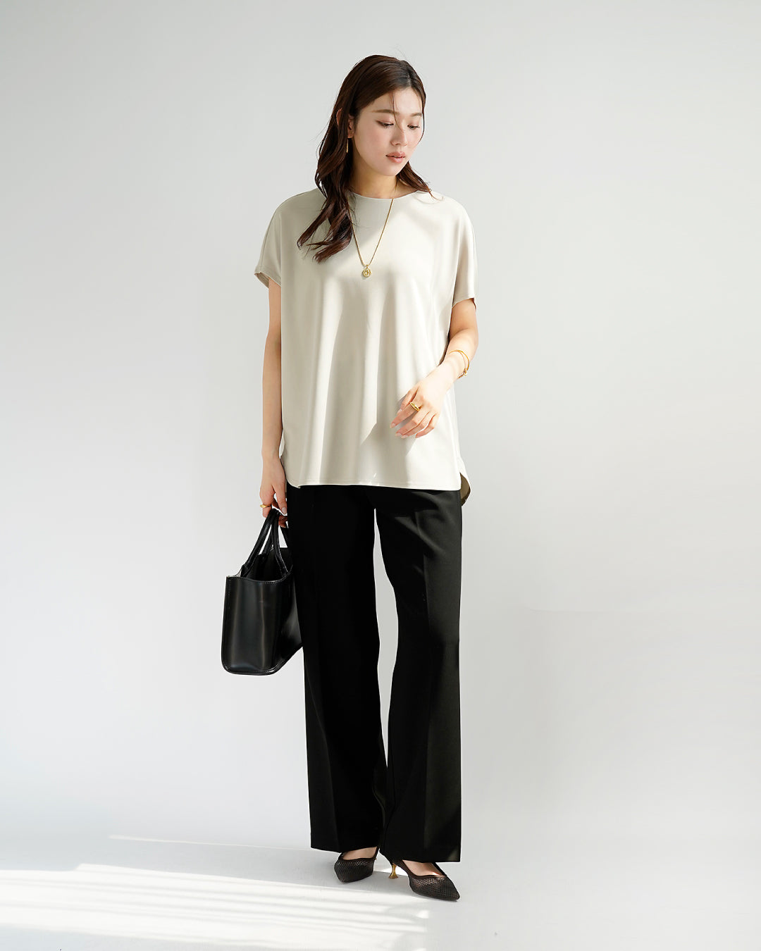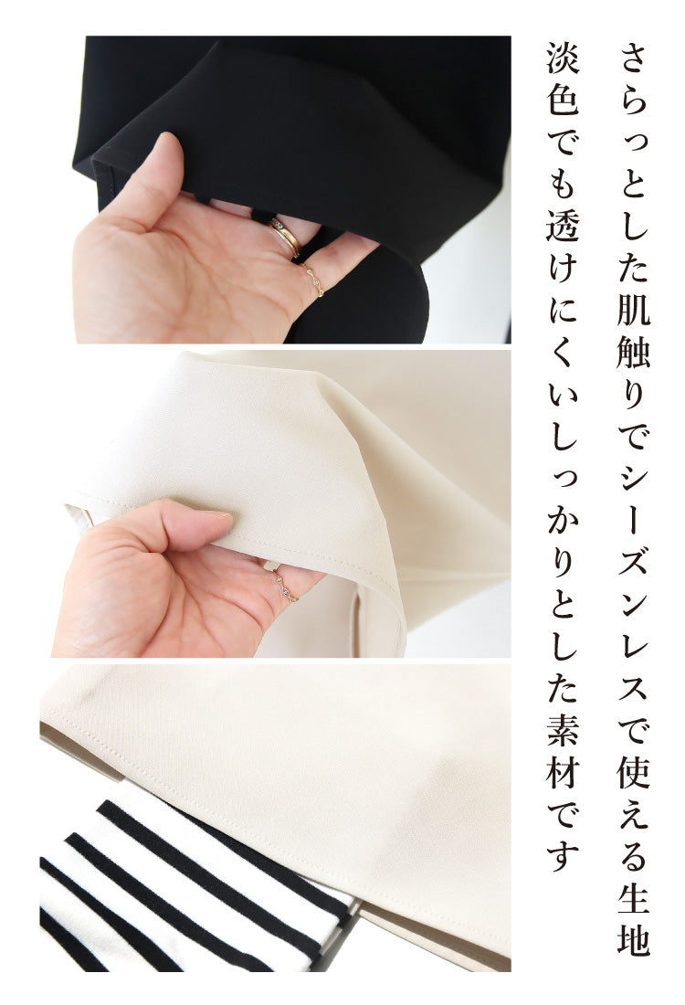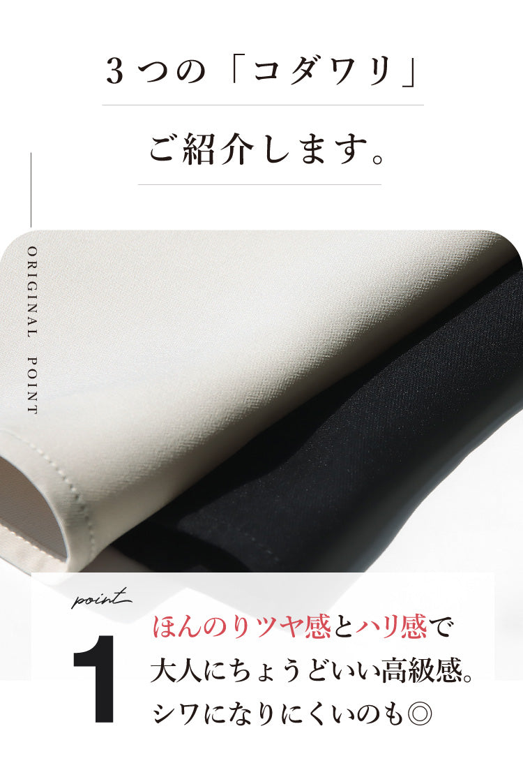 ほんのりツヤ感とハリ感のある上質な生地は、大人にふさわしい高級感を演出し、シワになりにくいのも魅力です。