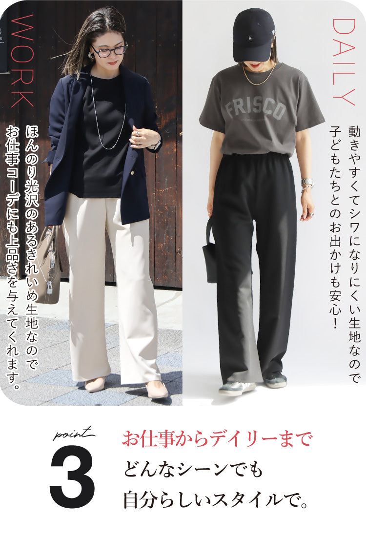 「きれい見えが叶う大人のイージーパンツ」は、美シルエットと快適な穿き心地を兼ね備えた万能アイテム。